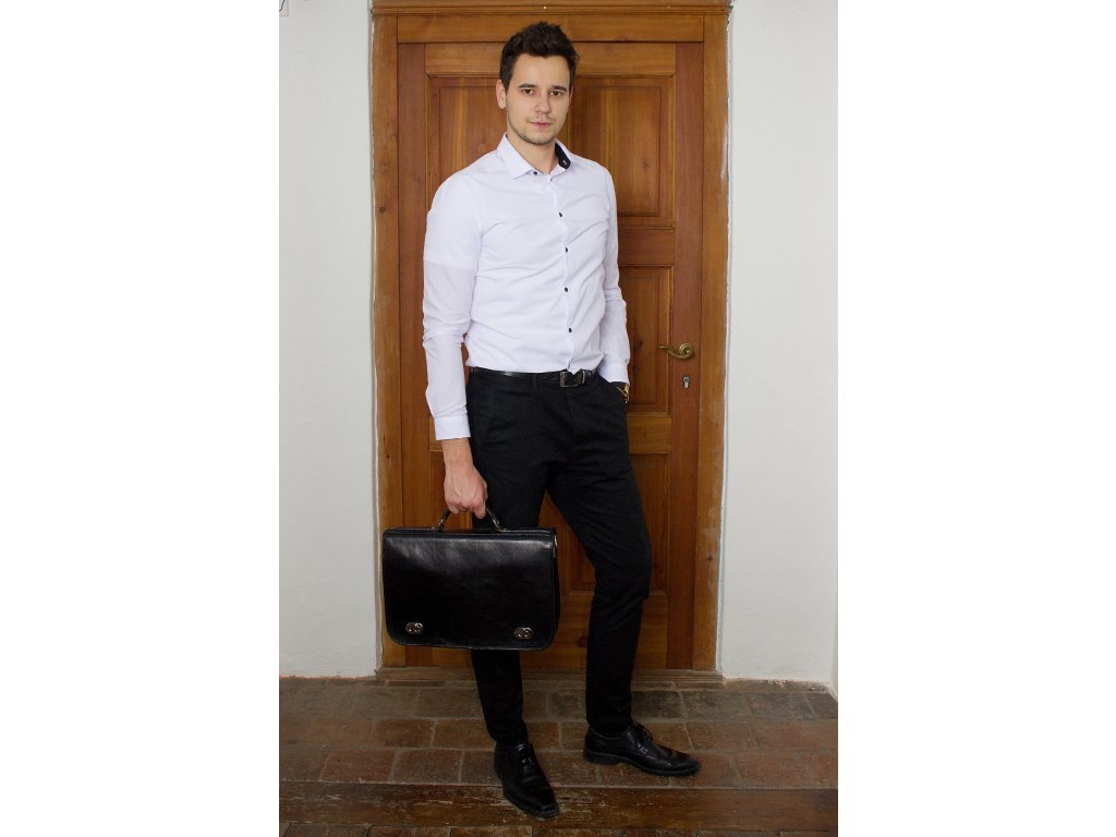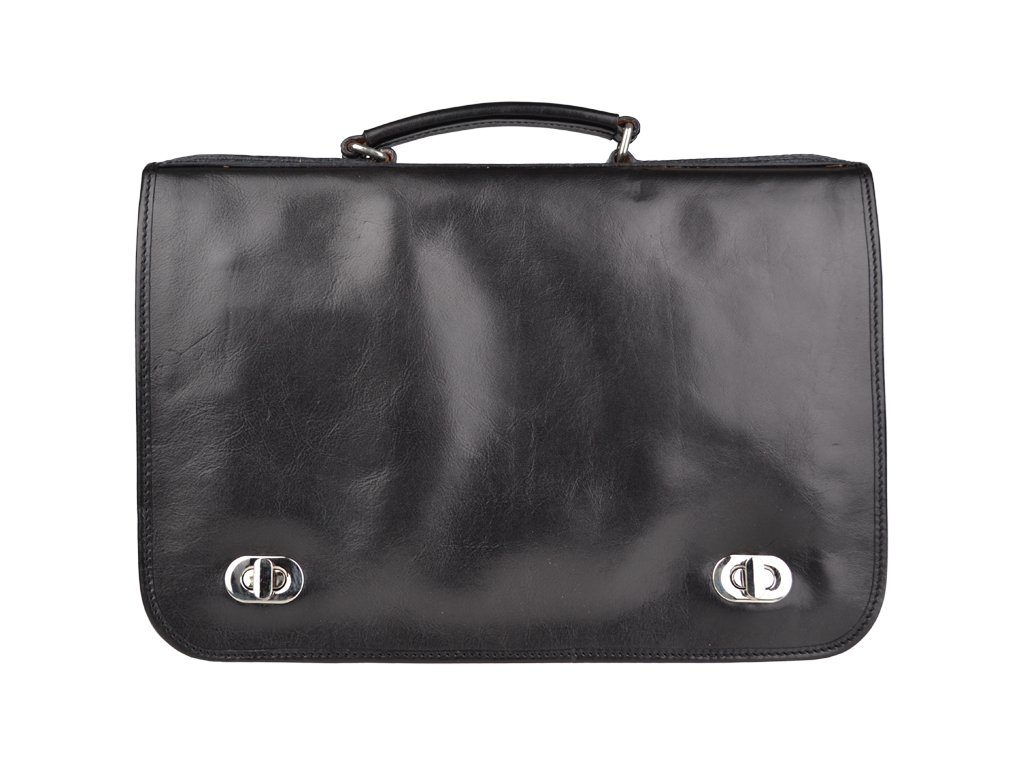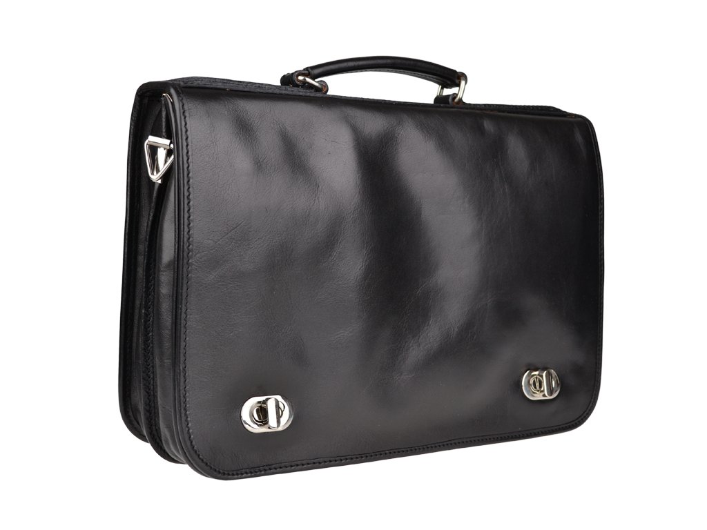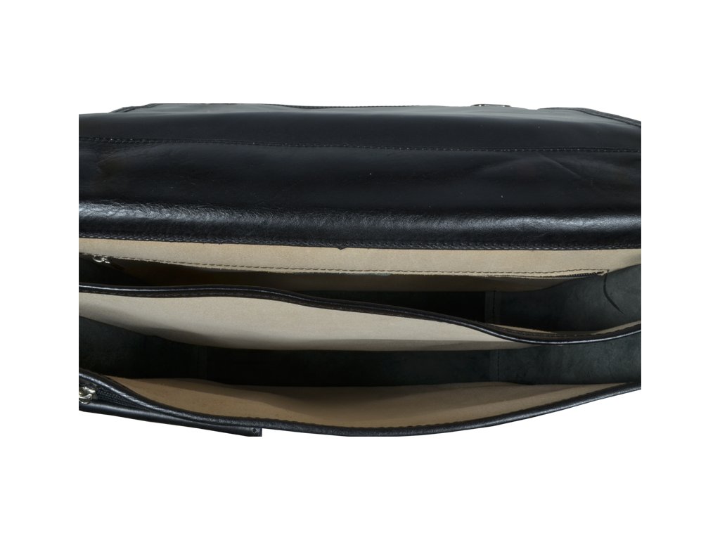 Pánska aktovka v čiernej farbe. Je vyrobená z hladkej kože a uzatvára sa pomocou kovových patentov na prednej strane. Aktovka má množstvo odkladacieho priestoru a hodí sa na bežné nosenie, či pracovné využitie. Je vhodná na nosenie do ruky, no v prípade potreby môžete využiť prídavný popruh a aktovku nosiť pohodlne cez rameno. Max. dĺžka popruhu je 135 cm.
