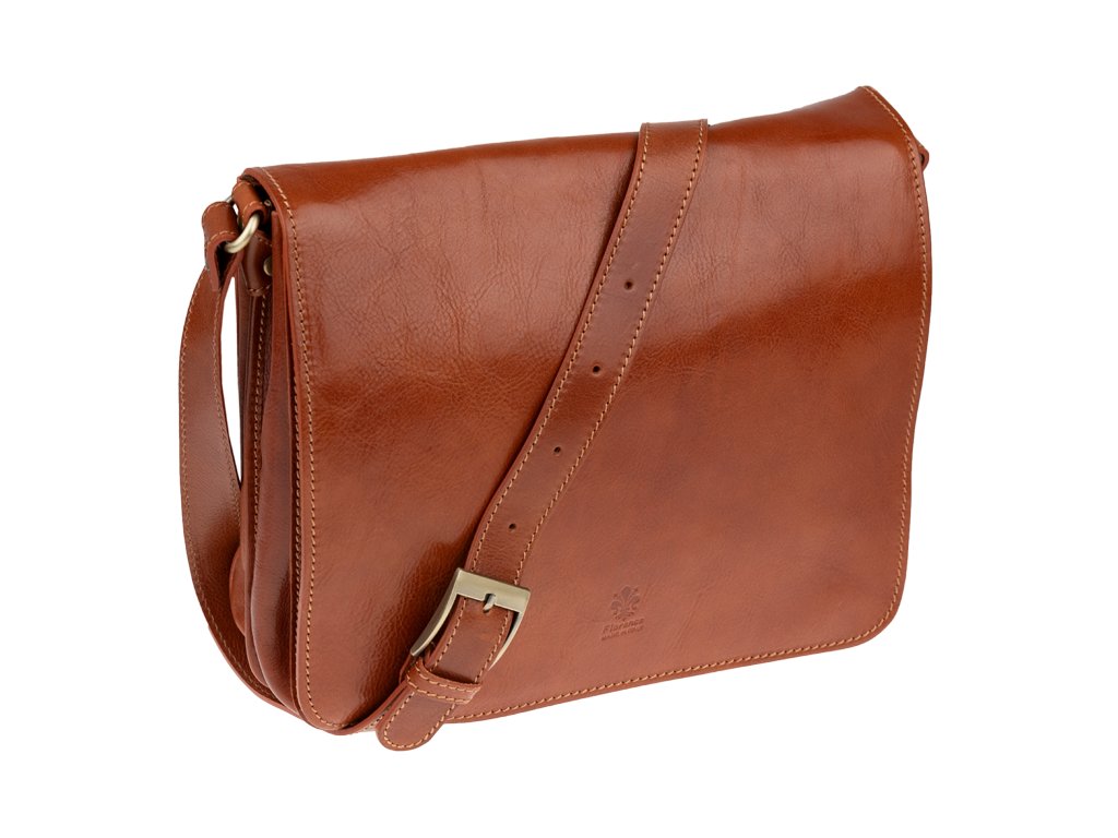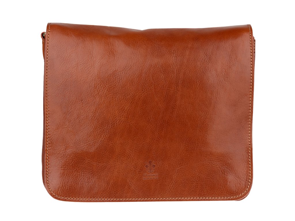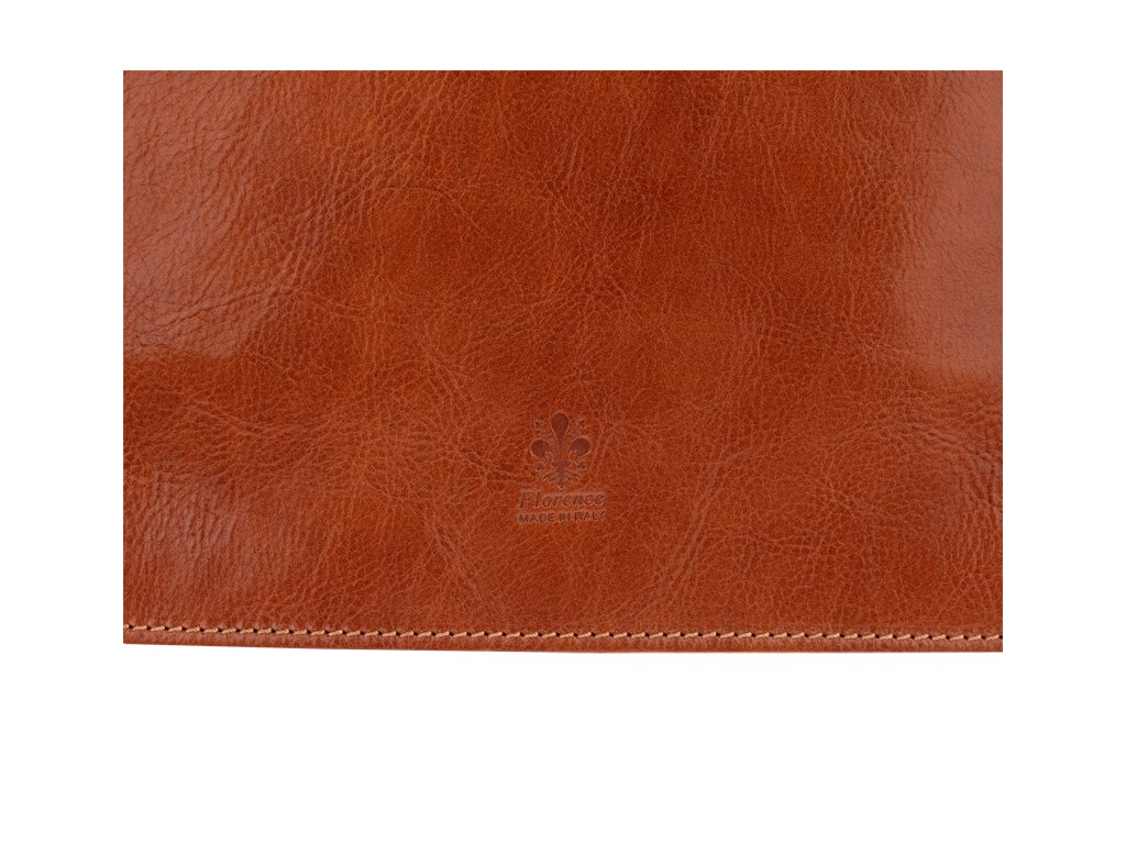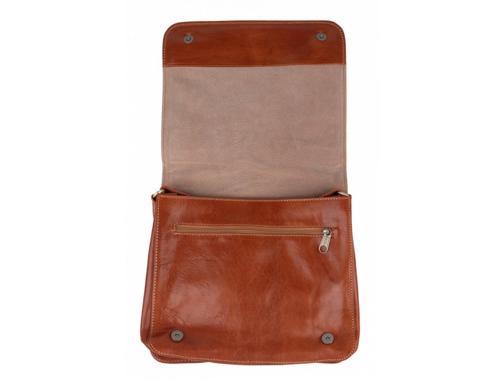 Už na prvý pohľad pôsobí táto camel aktovka ako veľmi kvalitný kúsok. Je vyrobená z pravej pevnej kože a veľmi dobre drží svoj tvar. Je vhodná na nosenie cez rameno alebo cross-body (krížom), popruh ponúka 5 rôznych nastavení dĺžky. Aktovka sa uzatvára pomocou dvoch magnetických patentiek. Vnútro kabelky je taktiež vyrobené z veľmi kvalitného materiálu. Je rozdelené na dve časti. Vnútro ponúka priehradku na mobil, zipsovacie vrecko a miesto určené na písacie potreby. Na zadnej vonkajšej i vnútornej strane sa nachádza vrecko na zips. Bez problémov do aktovky vložíte dokumenty formátu A4. Max. dĺžka popruhu je 120 cm.