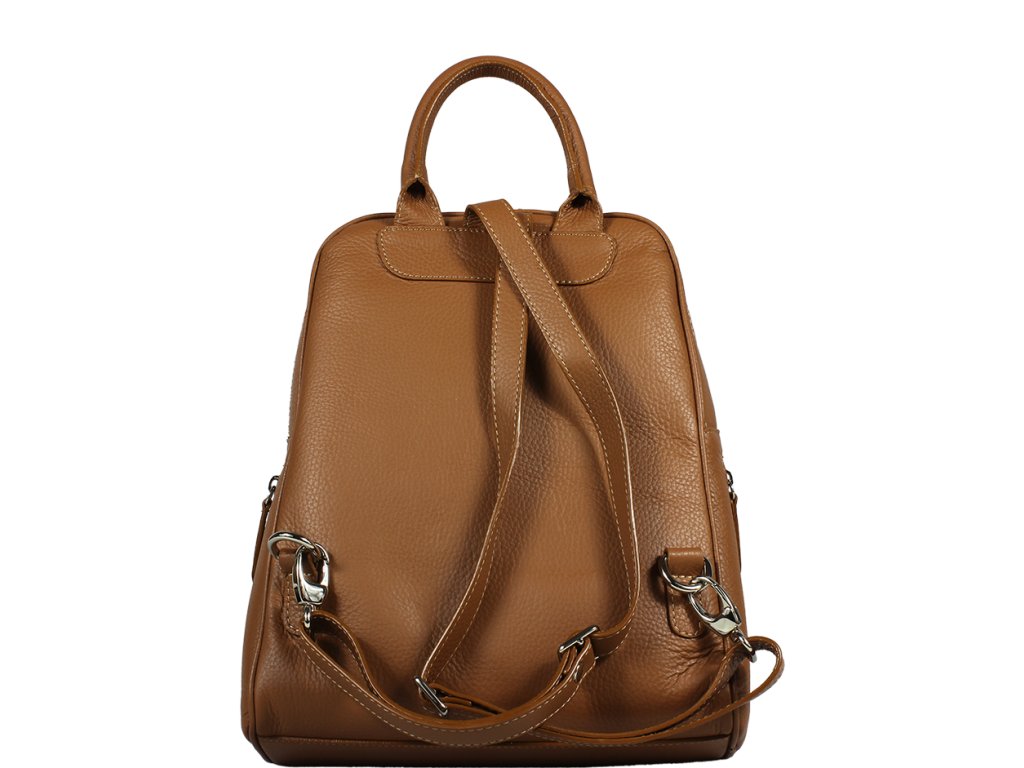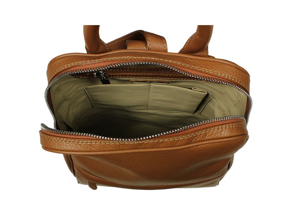 Veľmi pekný praktický batôžtek vyrobený z kvalitnej kože. Množstvom ukladacích priestorov je vhodný pre každodenné nosenie alebo pre voľný čas. Zipsovacie vrecko nájdete ako na prednej, tak aj na zadnej strane, taktiež po stranách. Vo vnútri sa nachádza vrecko na zips a dve úložné priehradky. Popruhy batôžku sô nastaviteľné.