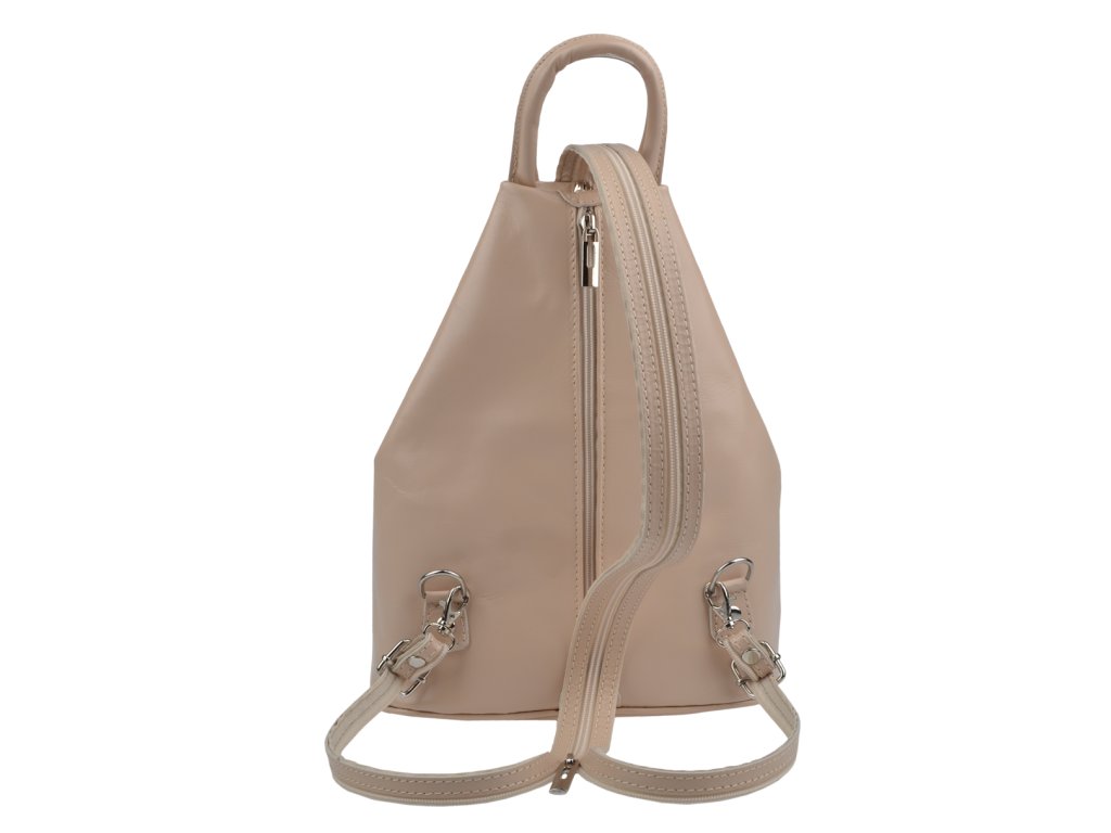 Jedinečný kožený batôžtek v hnedej farbe so zaujímavým tvarom. Pekne hpo zdobí nenápadný detail na prednej strane. Batôžtek sa otvára zboku na zips. Veľmi zaujímavé a pútavé sú popruhy na batohu, ktorý sa rozopínajú pomocou zipsu a tým si môžete ľubovoľne zvoliť spôsob nosenia.