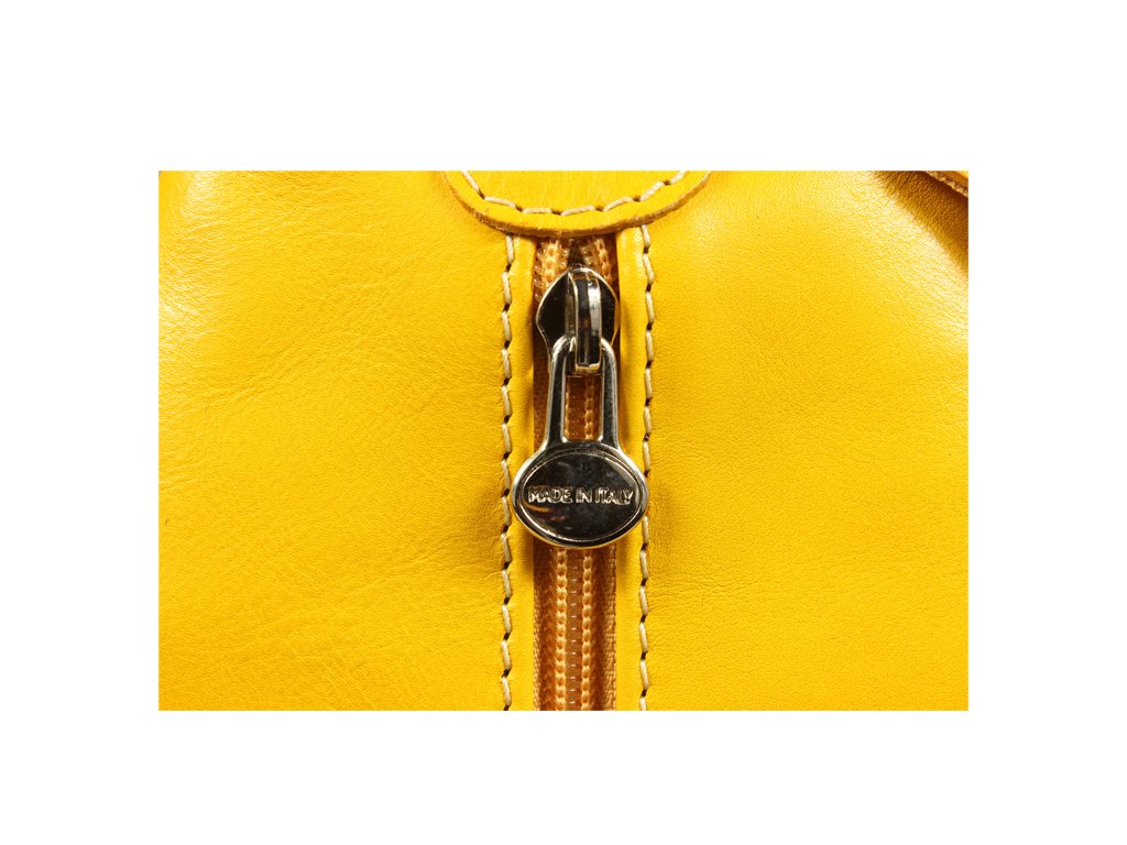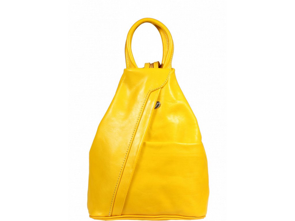 Jedinečný kožený batôžtek v žltej farbe so zaujímavým tvarom. Pekne hpo zdobí nenápadný detail na prednej strane. Batôžtek sa otvára zboku na zips. Veľmi zaujímavé a pútavé sú popruhy na batohu, ktorý sa rozopínajú pomocou zipsu a tým si môžete ľubovoľne zvoliť spôsob nosenia.