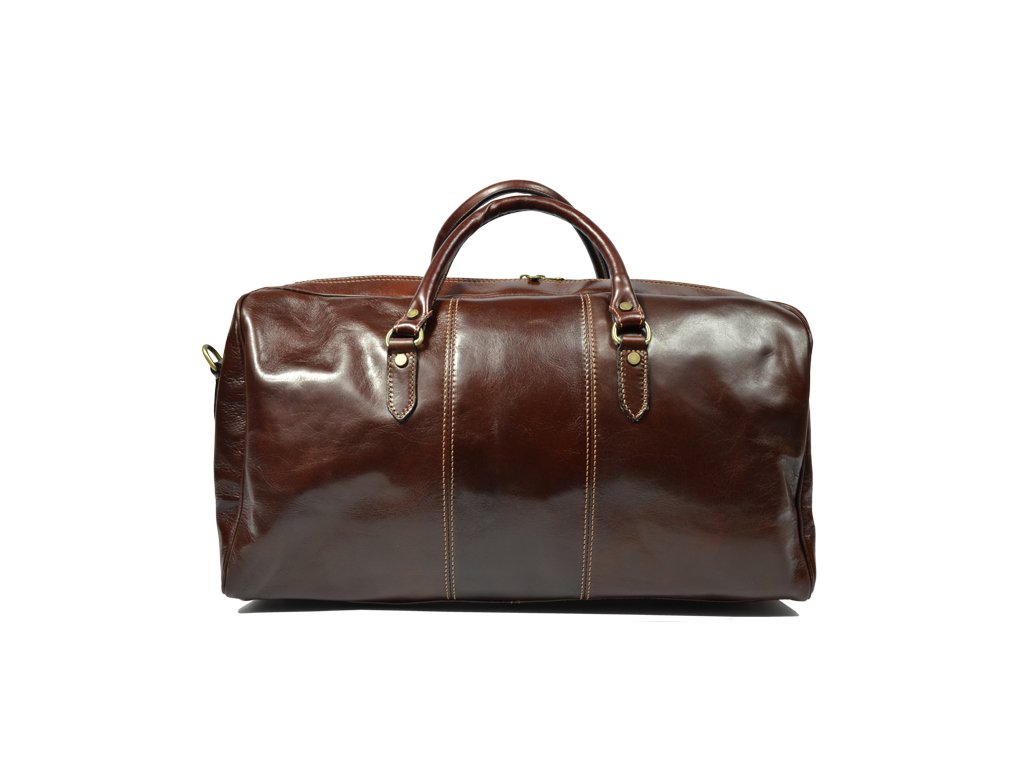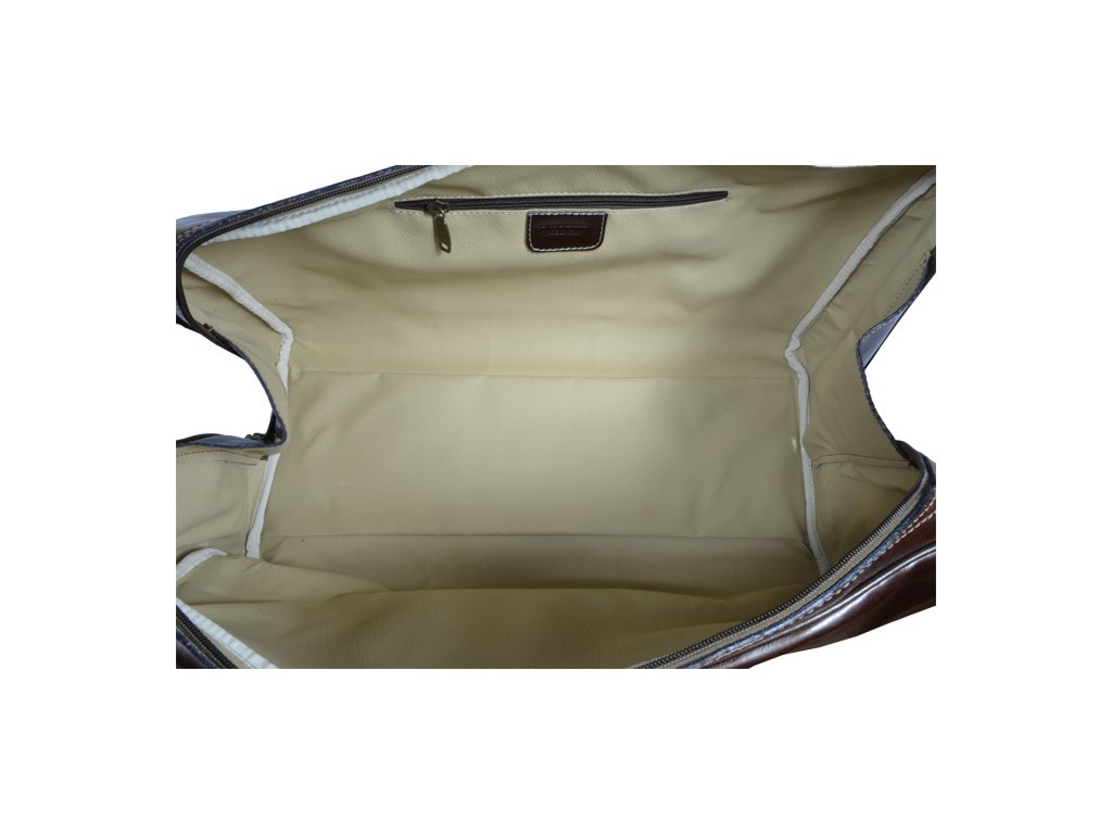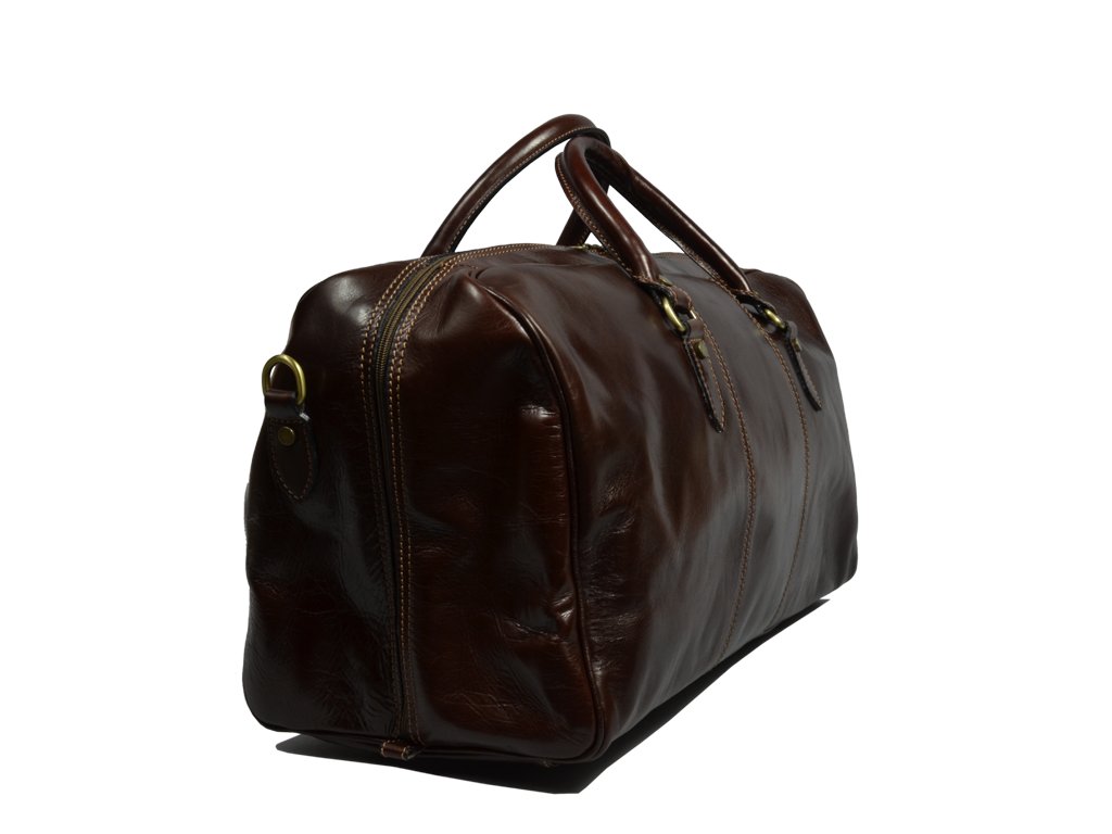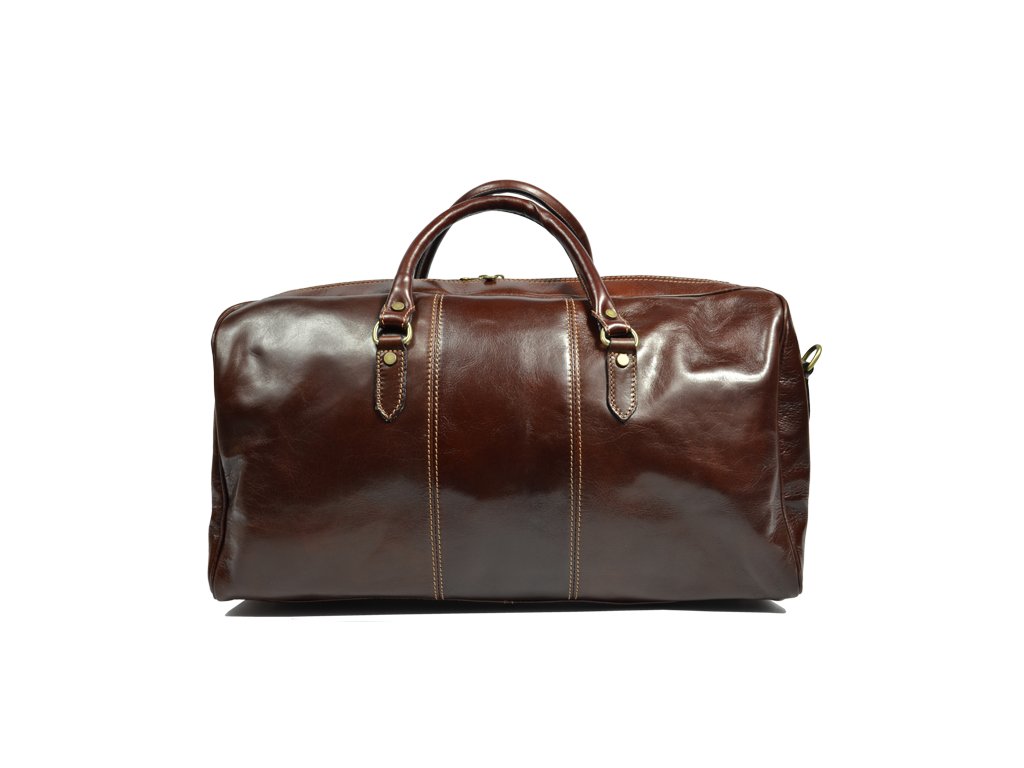 Elegantná a praktická cestovná taška v hnedej farbe. Taška je vyrobená z pravej mäkkej kože. Uzatvára sa pomocou zipsu a súčasťou balenia je prídavný popruh na nosenie cez rameno. Vnútro tašky je dostatočne priestranné s praktickým uzatvárateľným vreckom na zips.