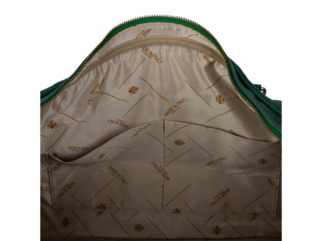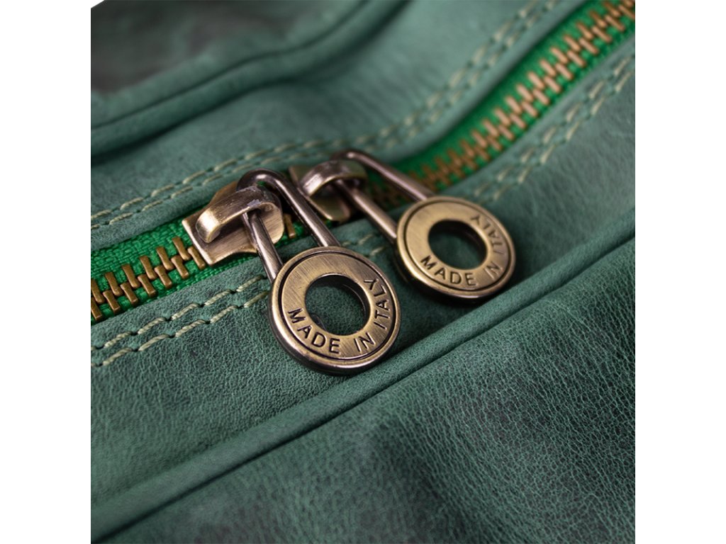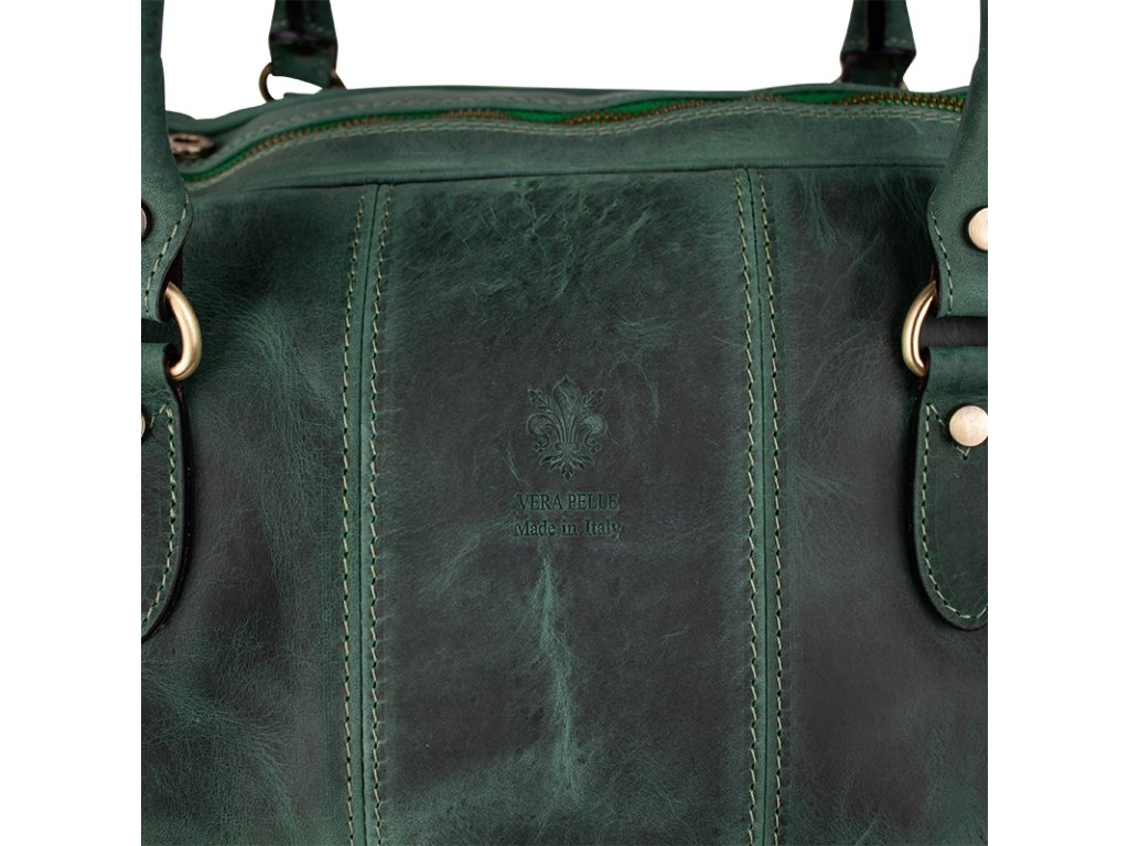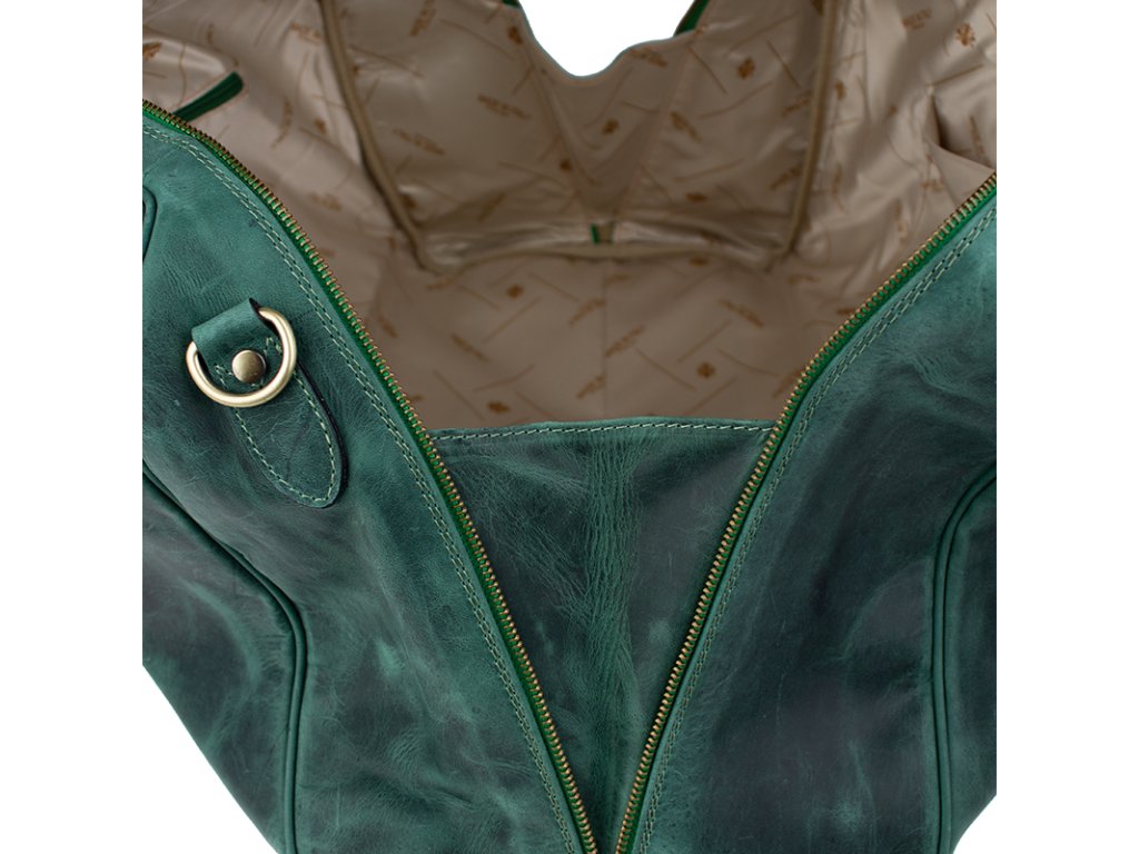Luxusná kožená cestovná taška v zelenej farbe. Taška je vyrobená z hladkej kvalitnej Talianskej kože s voskovanou úpravou, ktorá dodáva taške úžasnú patinu. Súčasťou tašky je prídavný popruh s dĺžkou 107 cm. Taška sa uzatvára kovovým zipsom. Cestujte štýlovo s koženou taškou!