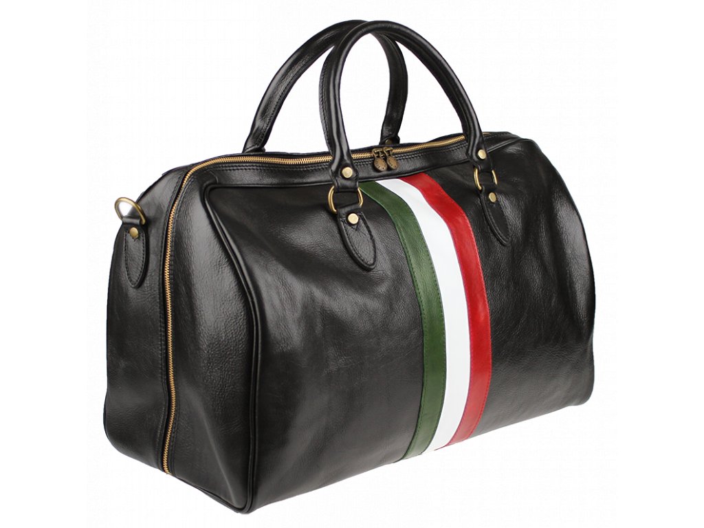 Elegantná a praktická cestovná taška v čiernej farbe. Taška je vyrobená z pravej mäkkej kože. Uzatvára sa pomocou zipsu a súčasťou balenia je prídavný popruh na nosenie cez rameno. Vnútro tašky je dostatočne priestranné s praktickým uzatvárateľným vreckom na zips.