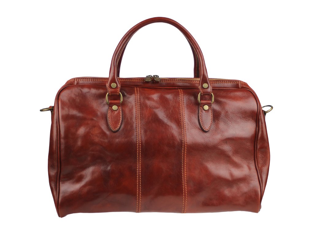 Elegantná a praktická cestovná taška v hnedej farbe. Taška je vyrobená z pravej mäkkej kože. Uzatvára sa pomocou zipsu a súčasťou balenia je prídavný popruh (107 cm) na nosenie cez rameno. Vnútro tašky je dostatočne priestranné s praktickým uzatvárateľným vreckom na zips.