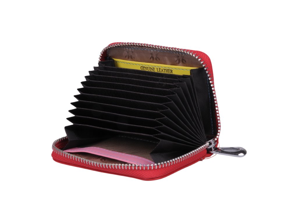 Harmonikové usporiadanie: Vnútorné priehradky v štýle "harmoniky" umožňujú prehľadné uloženie veľkého množstva kariet – kreditných, vernostných, preukazov aj vizitiek. Vďaka tomuto šikovnému usporiadaniu okamžite nájdete tú, ktorú potrebujete.
