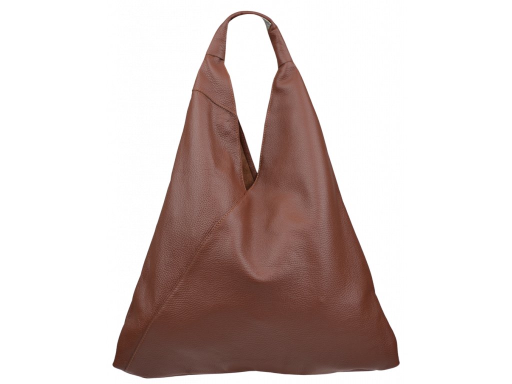 Veľmi krásna kabelka v tvare trojuholníka a v našom sklade patrí k najmodernejším modelom. Jednoduchá bez zbytočných ozdôb, elegantná a dostatočne priestranná. Milé dámy, nemusíte sa báť, že kabelka nedisponuje zipsom, pretože vnútro kabelky ponúka 2 kožené pásiky, ktoré môžete zaviazať ako šnúrky na topánke, týmto spôsobom môžete chrániť svoje cennosti. A k tomu všetkému kabelka disponuje koženou kapsičkou (šírka 18 cm, výška 10 cm), ktorá svojou veľkosťou pripomína peňaženku a je prišitá ku kabelke.