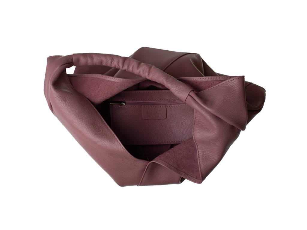 Veľmi krásna kabelka v tvare trojuholníka a v našom sklade patrí k najmodernejším modelom. Jednoduchá bez zbytočných ozdôb, elegantná a dostatočne priestranná. Milé dámy, nemusíte sa báť, že kabelka nedisponuje zipsom, pretože vnútro kabelky ponúka 2 kožené pásiky, ktoré môžete zaviazať ako šnúrky na topánke, týmto spôsobom môžete chrániť svoje cennosti. A k tomu všetkému kabelka disponuje koženou kapsičkou (šírka 18 cm, výška 10 cm), ktorá svojou veľkosťou pripomína peňaženku a je prišitá ku kabelke.