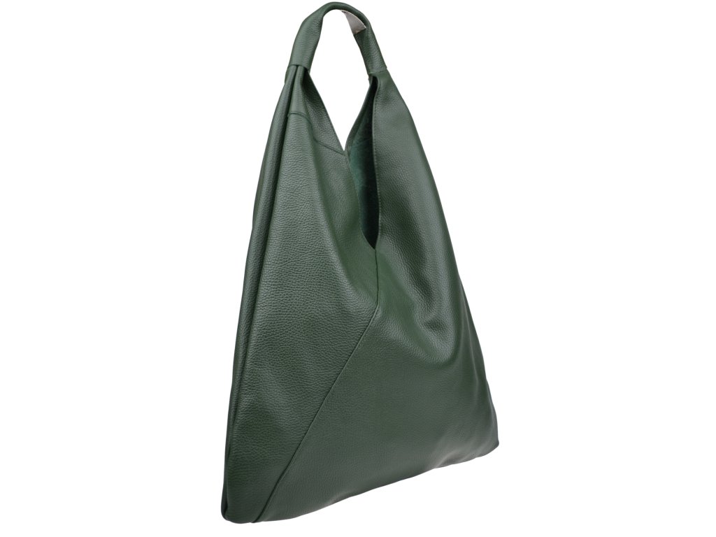 Veľmi krásna kabelka v tvare trojuholníka a v našom sklade patrí k najmodernejším modelom. Jednoduchá bez zbytočných ozdôb, elegantná a dostatočne priestranná. Milé dámy, nemusíte sa báť, že kabelka nedisponuje zipsom, pretože vnútro kabelky ponúka 2 kožené pásiky, ktoré môžete zaviazať ako šnúrky na topánke, týmto spôsobom môžete chrániť svoje cennosti. A k tomu všetkému kabelka disponuje koženou kapsičkou (šírka 18 cm, výška 10 cm), ktorá svojou veľkosťou pripomína peňaženku a je prišitá ku kabelke.