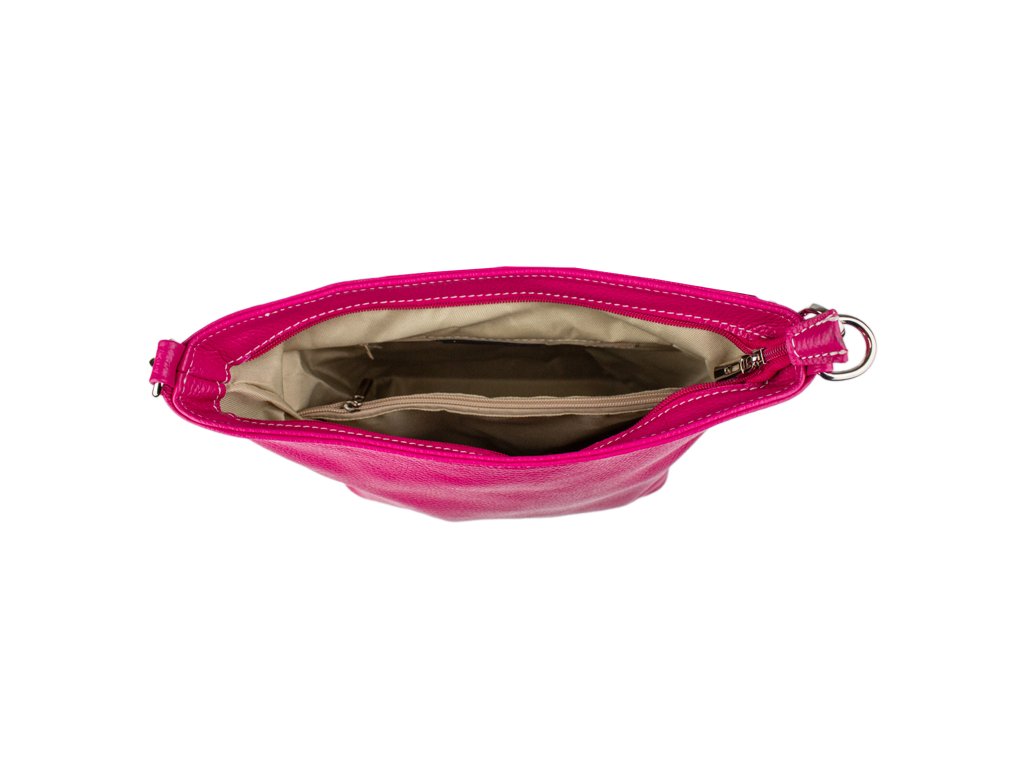 Jednoduchá a praktická kabelka vhodná na každodenné nosenie. Je vyrobená z pravej poctivej kože a uzatvára sa pomocou zipsu. Vo vnútri nájdete priečku uprostred, ktorá súčasne slúži ako vrecko na zips, a malé vrecko a priehradku na bočných stenách. Hĺbka dna tejto kabelky je 11 cm.