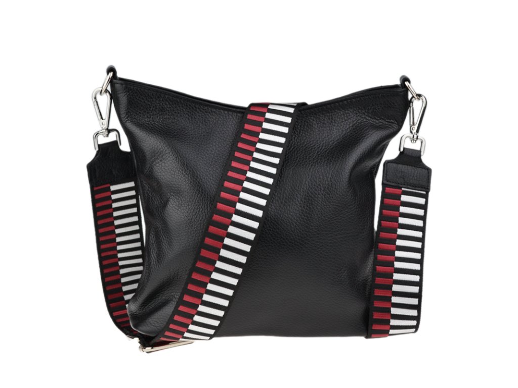 Jednoduchá a praktická kabelka vhodná na každodenné nosenie v univerzálnej čiernej farbe. Je vyrobená z pravej poctivej kože a uzatvára sa pomocou zipsu. Vo vnútri nájdete priečku uprostred, ktorá súčasne slúži ako vrecko na zips, a malé vrecko a priehradku na bočných stenách. Hĺbka dna tejto kabelky je 11 cm.
