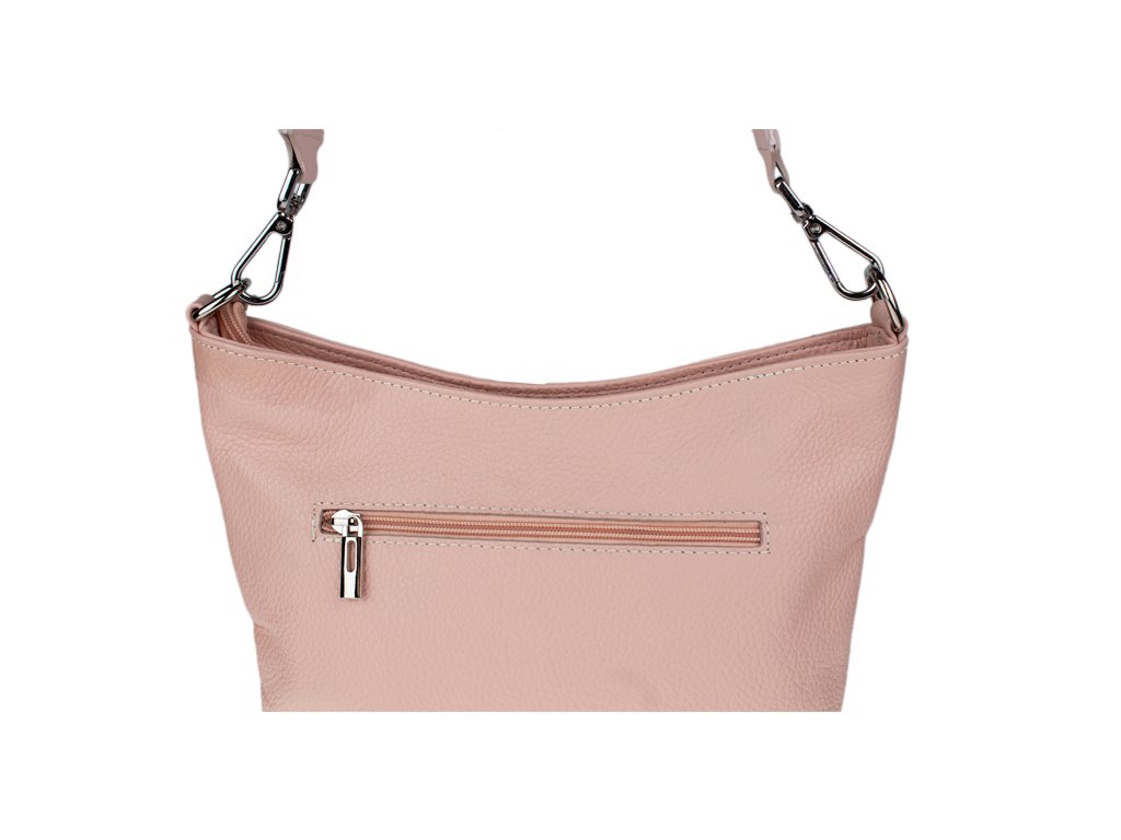 Jednoduchá a praktická kabelka vhodná na každodenné nosenie. Je vyrobená z pravej poctivej kože a uzatvára sa pomocou zipsu. Vo vnútri nájdete priečku uprostred, ktorá súčasne slúži ako vrecko na zips, a malé vrecko a priehradku na bočných stenách. Hĺbka dna tejto kabelky je 11 cm.