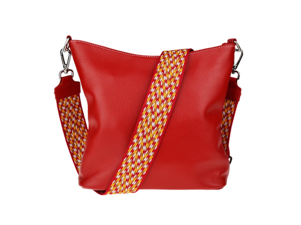 Jednoduchá a praktická kabelka vhodná na každodenné nosenie v univerzálnej červenej farbe. Je vyrobená z pravej poctivej kože a uzatvára sa pomocou zipsu. Vo vnútri nájdete priečku uprostred, ktorá súčasne slúži ako vrecko na zips, a malé vrecko a priehradku na bočných stenách. Hĺbka dna tejto kabelky je 11 cm.