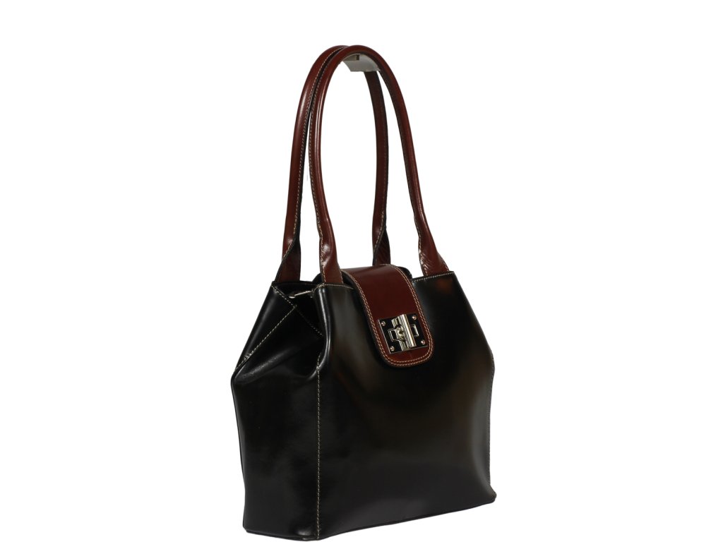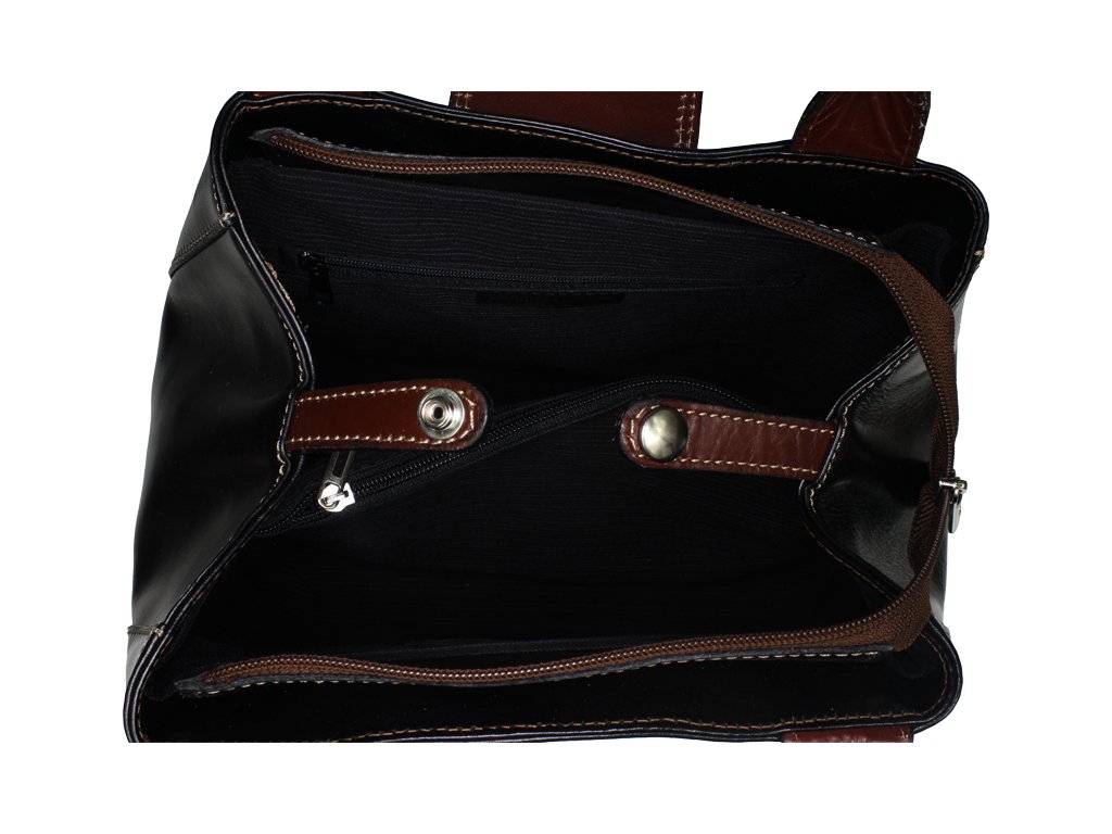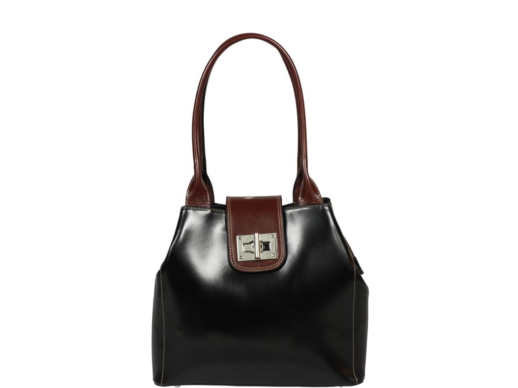 Nekonvenčná a luxusná kabelka vo farbe čierna vyrobená z pravej pevnej kože. Získa si Vás svojím zaujímavým tvarom a spôsobom svojho uzatvárania - patentkou na vonkajšej strane, ktorá zároveň slúži ako ozdoba, a zipsom. Netypický tvar si kabelka získala vďaka patentke, ktorú je treba po rozopnutí odopnúť. Kabelka je vhodná na nosenie cez rameno a ponúka dostatok priestoru pre všetky potrebné veci. Vo vnútri je rozdelené vreckom na zips na dve časti a na strane disponuje malým zatváracím vreckom.