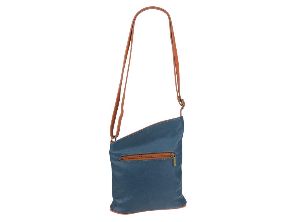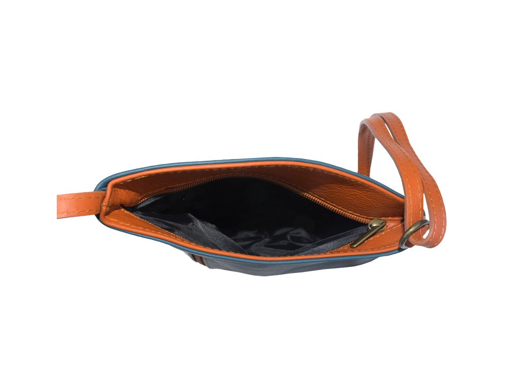 Malá a veľmi praktická kabelka na každodenné nosenie, ktorá Vás osloví najmä svojou jednoduchosťou a zaujímavým tvarom. Je vyrobená z pravej hladkej kože a uzatvára sa pomocou zipsu. Vďaka nastaviteľnému popruhu je možné kabelku nosiť cez rameno alebo cross-body (krížom). Z vonkajšej strany ponúka dve vrecká na zips, vrecko na prednej strane sa uzatvára vertikálne a na zadnej strane horizontálne. Vo vnútri kabelka disponuje ešte jedným malým vreckom na zips, vhodným napríklad pre Váš mobil alebo kľúče. Dĺžka popruhu je max. cca 110 cm.