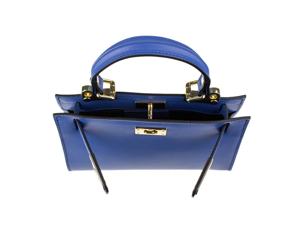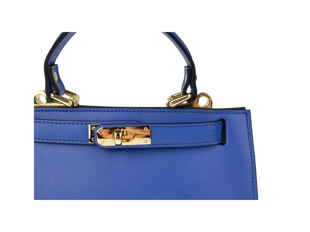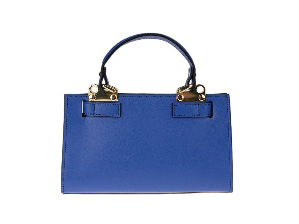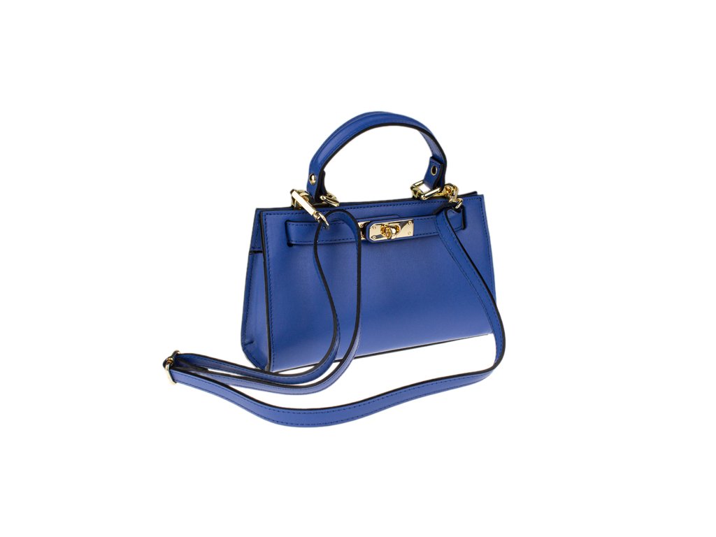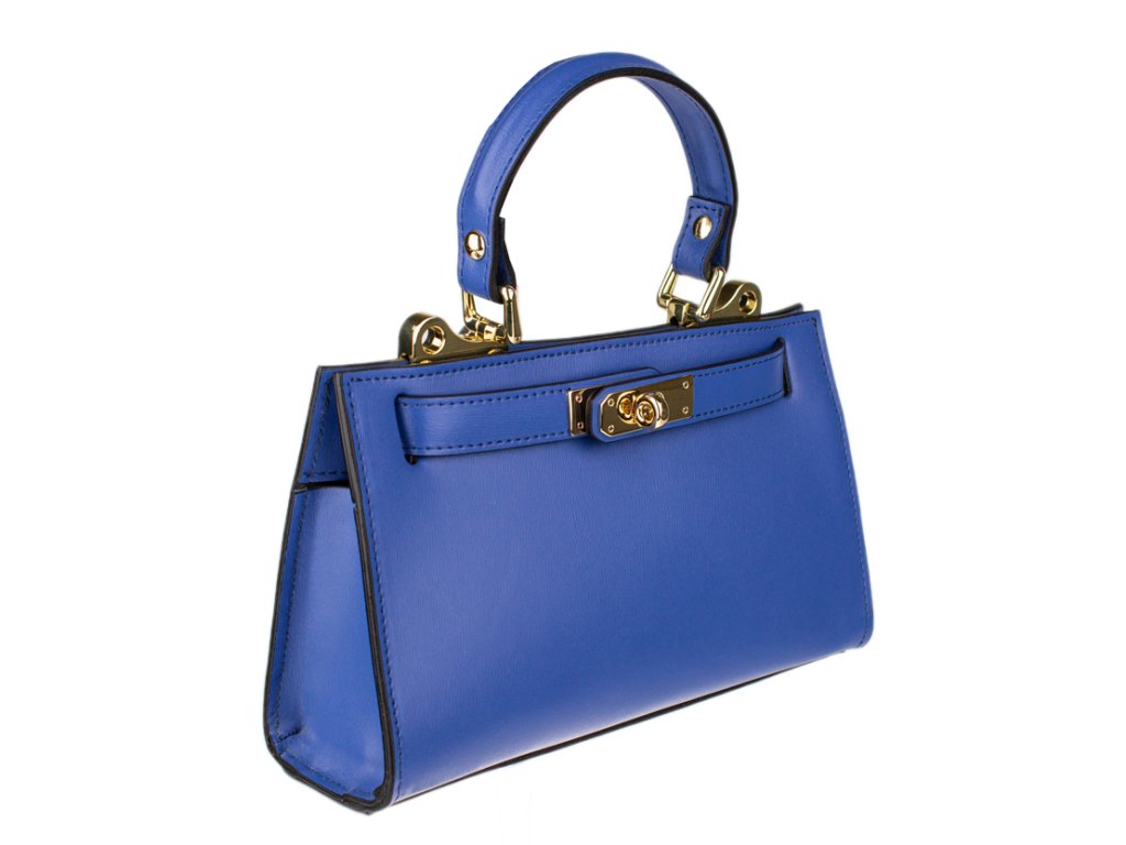Malá kabelka z pevnej kože v modrej farbe. Kabelku je možné nosiť v ruke alebo cez rameno. Max. dĺžka prídavného pásika je 115 cm. Kabelka je vybavená dômyselným a elegantným zapínaním. Vnútri kabelky nájdeme vrecko na mobil či kľúče.