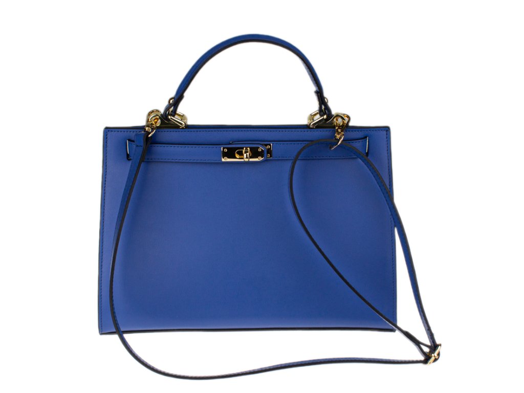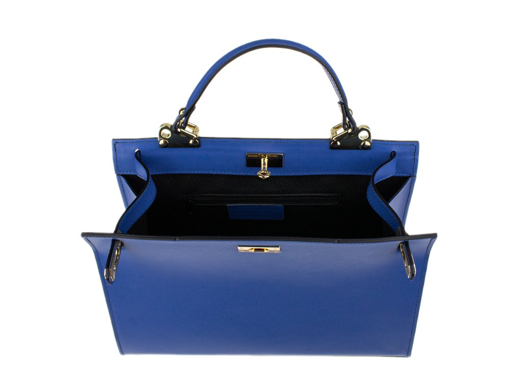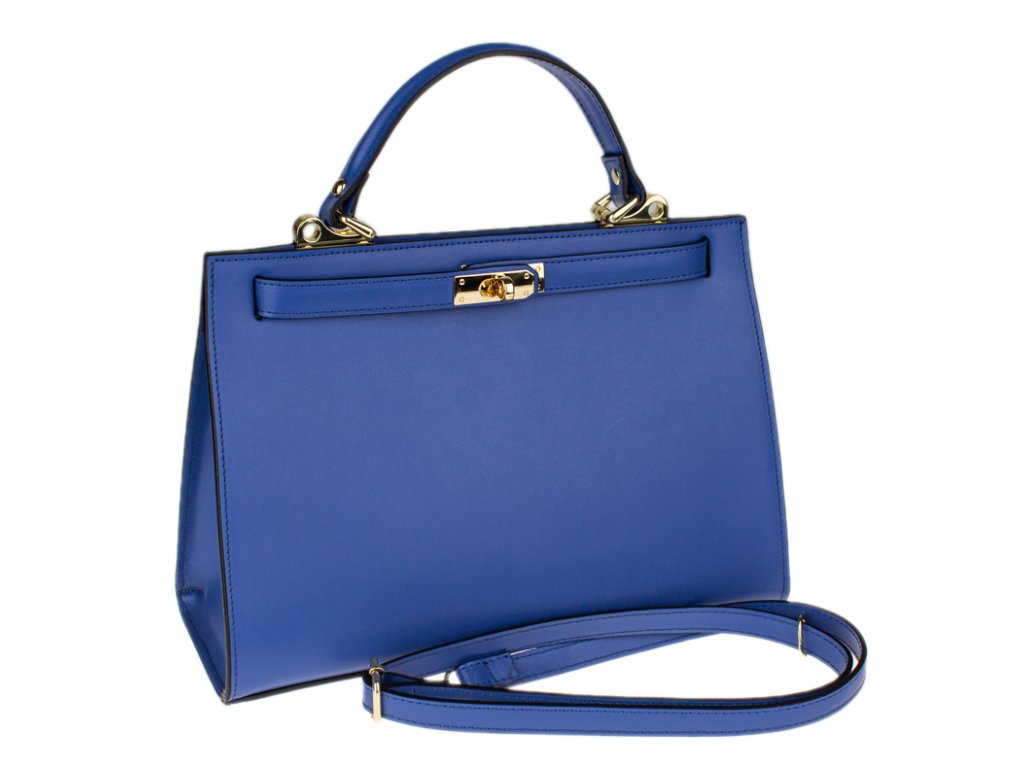 Krásna kabelka z pevnej kože v modrej farbe. Kabelku je možné nosiť v ruke alebo cez rameno. Max. dĺžka prídavného pásika je 115 cm. Kabelka je vybavená dômyselným a elegantným zapínaním. Vnútri kabelky nájdeme vrecko na mobil či kľúče.