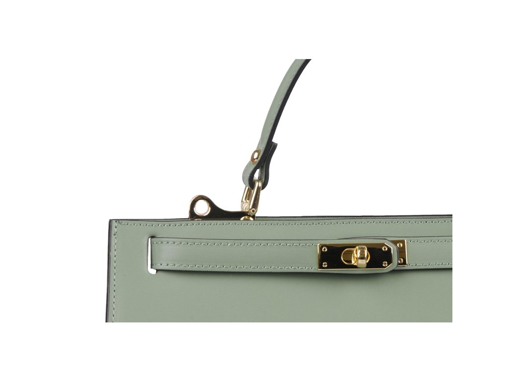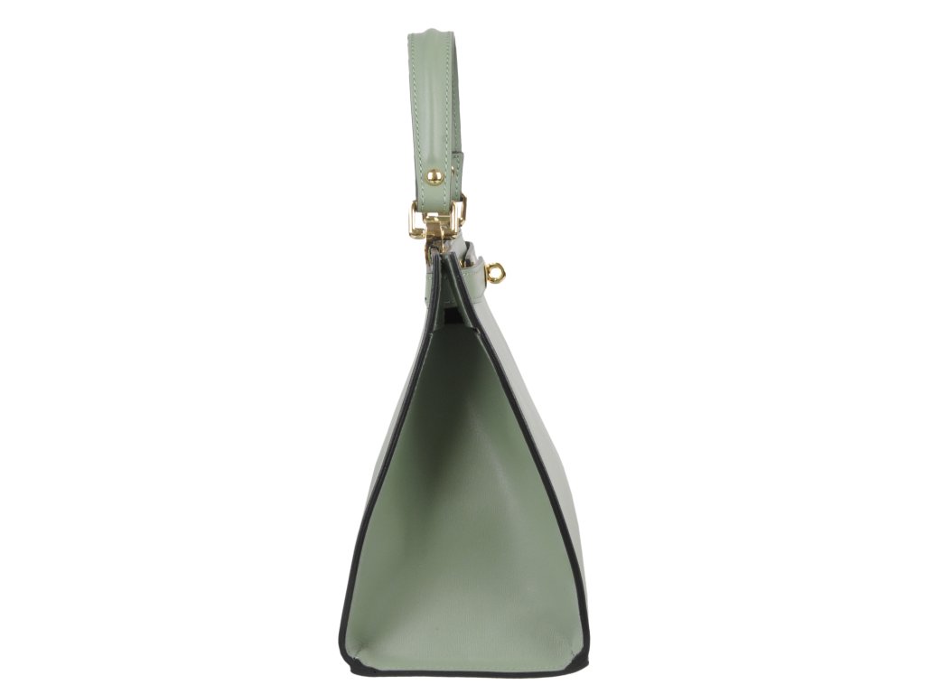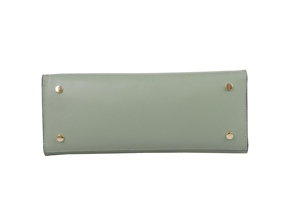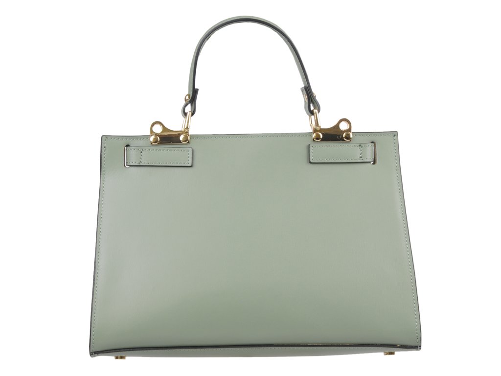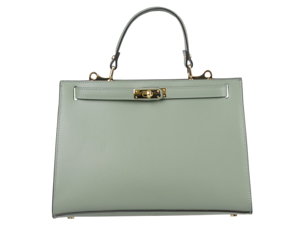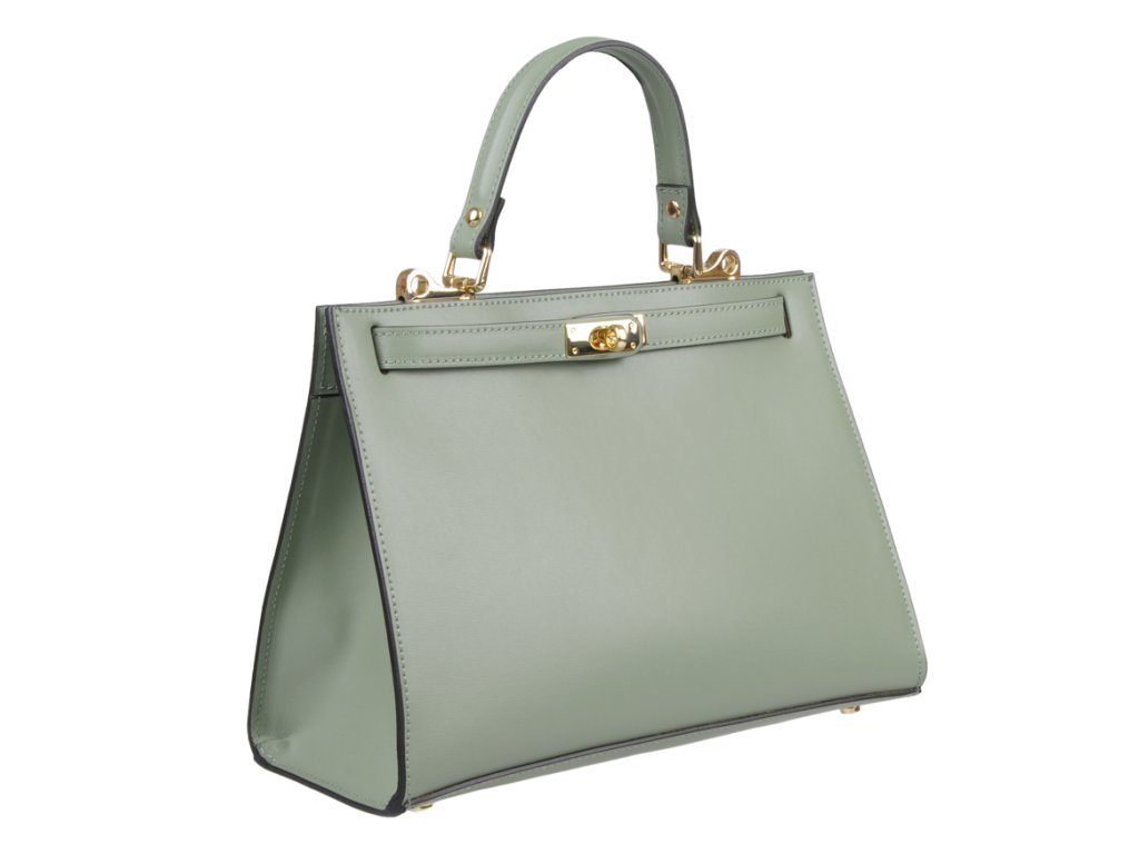 Krásna kabelka z pevnej kože v khaki farbe. Kabelku je možné nosiť v ruke alebo cez rameno. Max. dĺžka prídavného pásika je 115 cm. Kabelka je vybavená dômyselným a elegantným zapínaním. Vnútri kabelky nájdeme vrecko na mobil či kľúče.