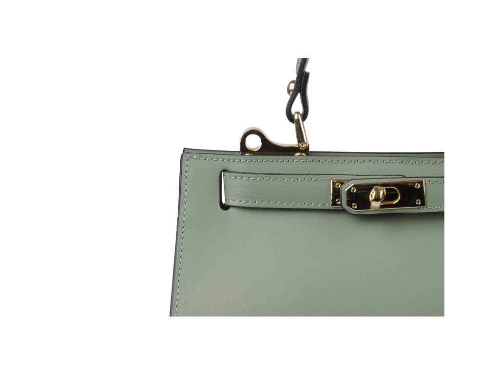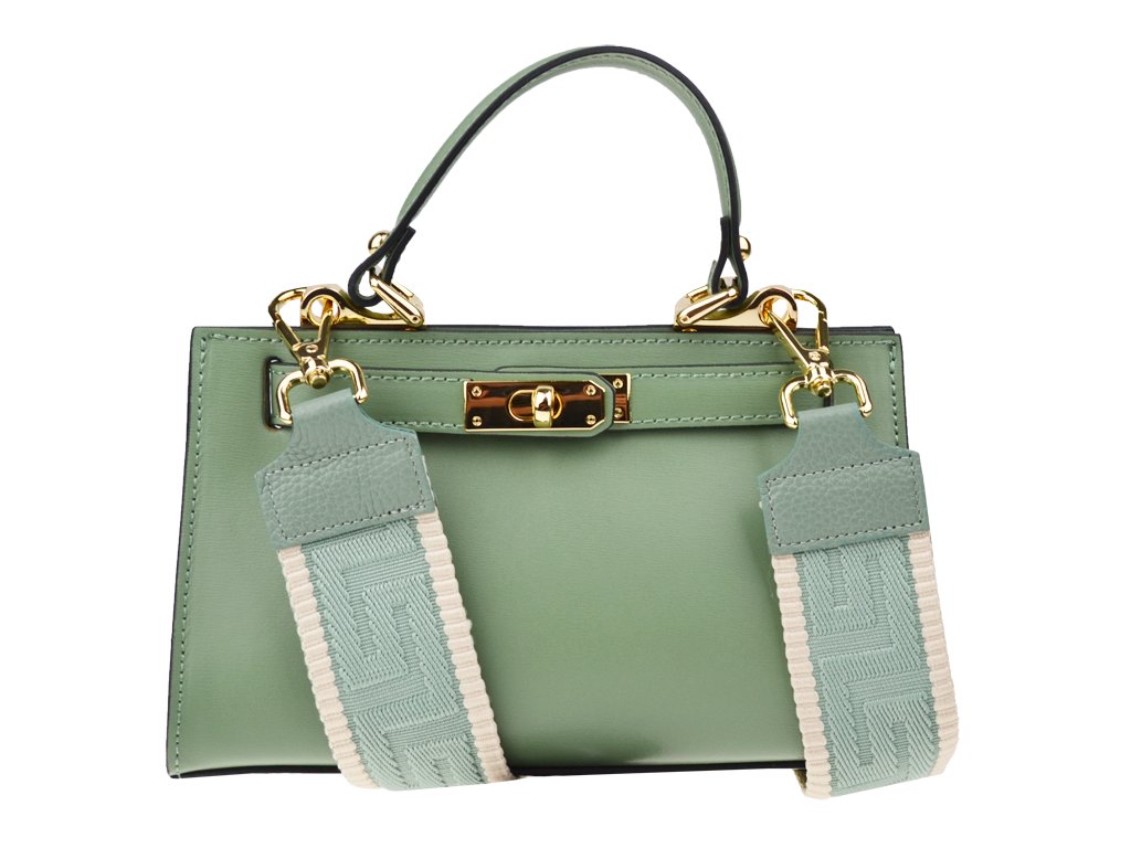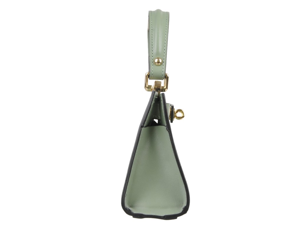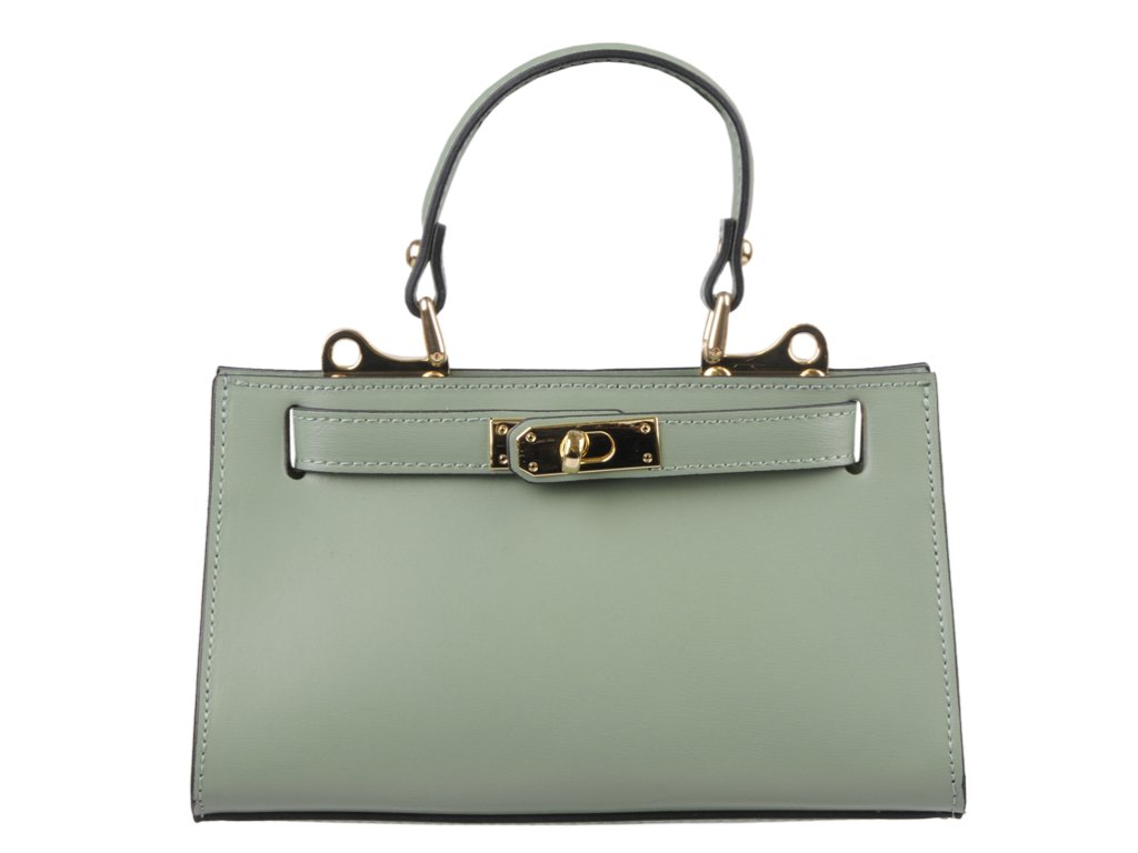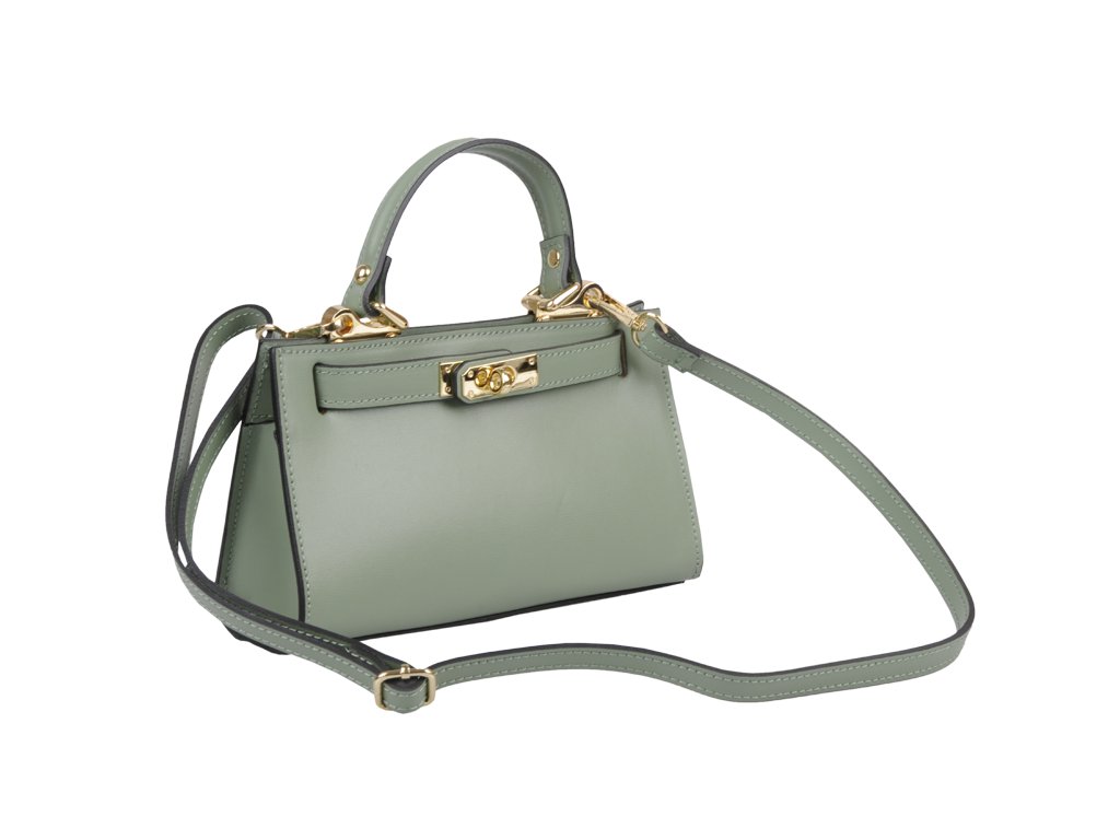 Malá kabelka z pevnej kože v zelenej farbe. Kabelku je možné nosiť v ruke alebo cez rameno. Max. dĺžka prídavného pásika je 115 cm. Kabelka je vybavená dômyselným a elegantným zapínaním. Vnútri kabelky nájdeme vrecko na mobil či kľúče.