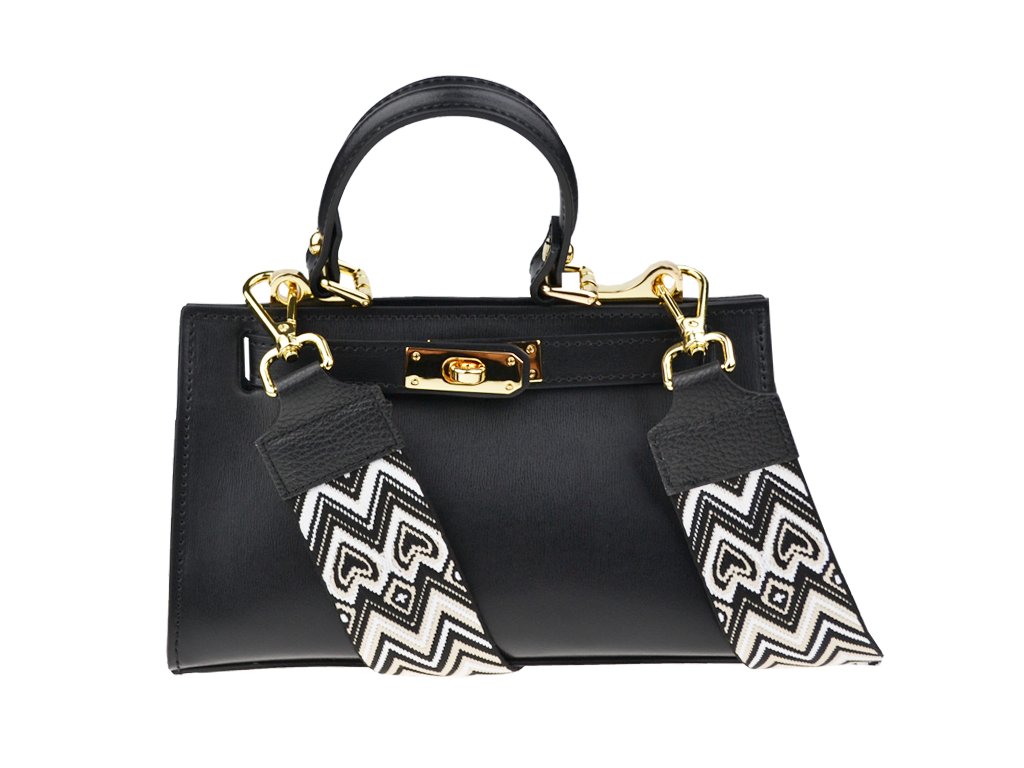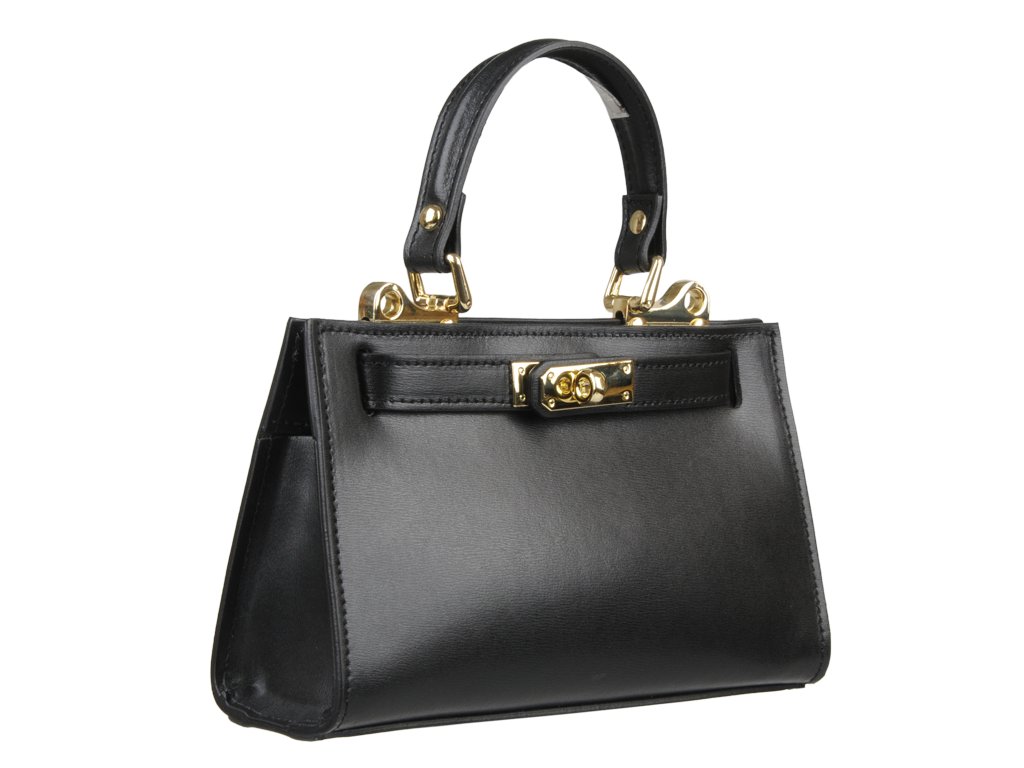 Malá kabelka z pevnej kože v čiernej farbe. Kabelku je možné nosiť v ruke alebo cez rameno. Max. dĺžka prídavného pásika je 115 cm. Kabelka je vybavená dômyselným a elegantným zapínaním. Vnútri kabelky nájdeme vrecko na mobil či kľúče.