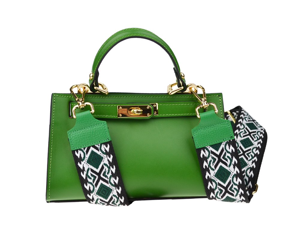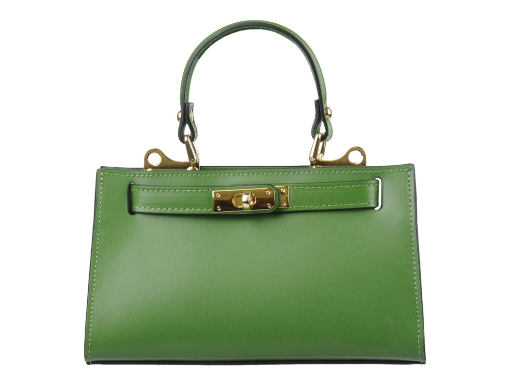 Malá kabelka z pevnej kože v zelenej farbe. Kabelku je možné nosiť v ruke alebo cez rameno. Max. dĺžka prídavného pásika je 115 cm. Kabelka je vybavená dômyselným a elegantným zapínaním. Vnútri kabelky nájdeme vrecko na mobil či kľúče.