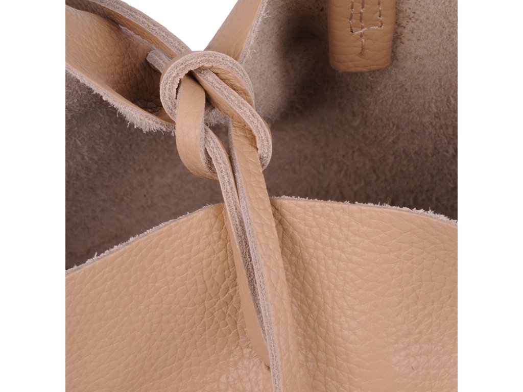 Hornú časť kabelky je možné stiahnuť pomocou koženej šnúrky, čo dodáva šarm a zároveň čiastočne zaisťuje obsah.