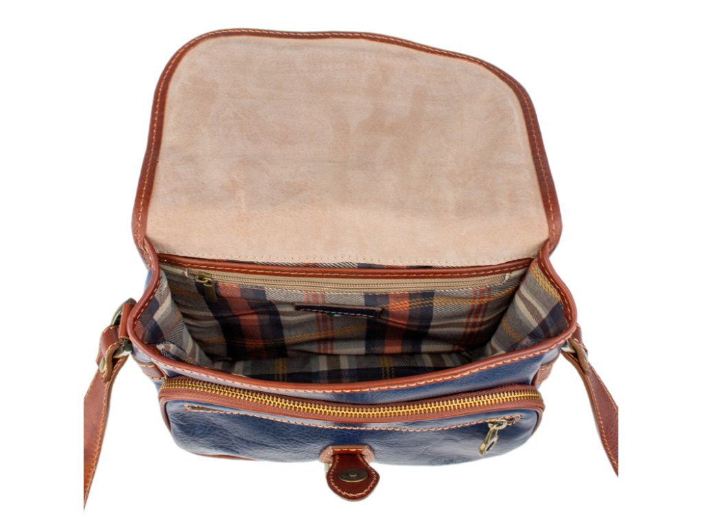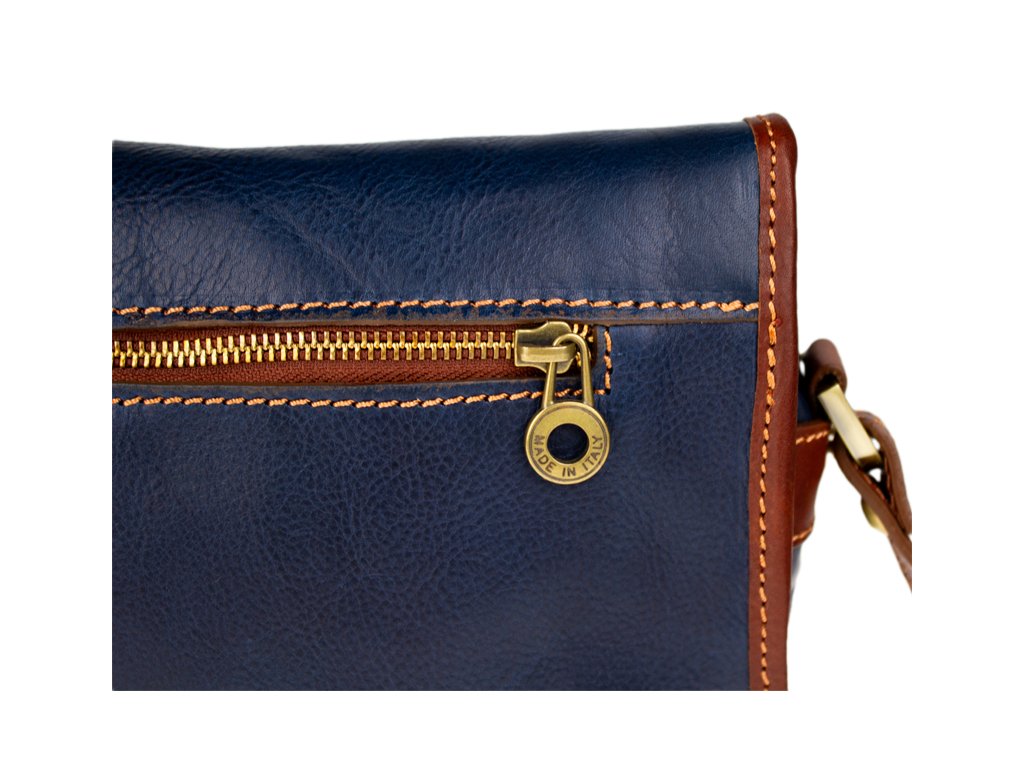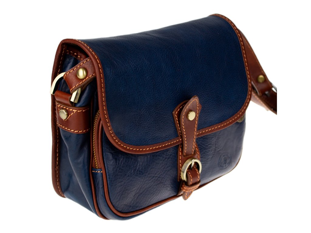 Predstavujeme vám nadčasovú koženú kabelku s elegantným a kompaktným designom, ktorá je vyrobená ručne v Taliansku. Je ideálnou voľbou pre ženu, ktorá oceňuje tradičnú remeselnú prácu, prvotriedne materiály a štýl, ktorý nikdy nevyjde z módy.Pravá talianska koža: Kabelka je zhotovená z kvalitnej hovädzej kože v bohatom modrom odtieni, ktorý časom získa jedinečnú patinu. Klasický dizajn: Elegantný tvar tašky s oblým vekom a zapínaním na dekoratívny kožený opasok s mosadznou prackou a patentom.Táto kabelka je dostatočne priestranná pre všetky vaše každodenné nevyhnutnosti, ako je peňaženka, telefón, kľúče a menšia kozmetika. Táto kabelka je viac než len doplnok - je to investícia do štýlu. Vďaka svojmu univerzálnemu prevedeniu sa skvele hodí ako k džínsom a ležérnemu outfitu, tak k elegantným šatám. Dlhý, nastaviteľný popruh (120 cm) zaisťuje pohodlné nosenie ako crossbody alebo klasicky cez rameno.