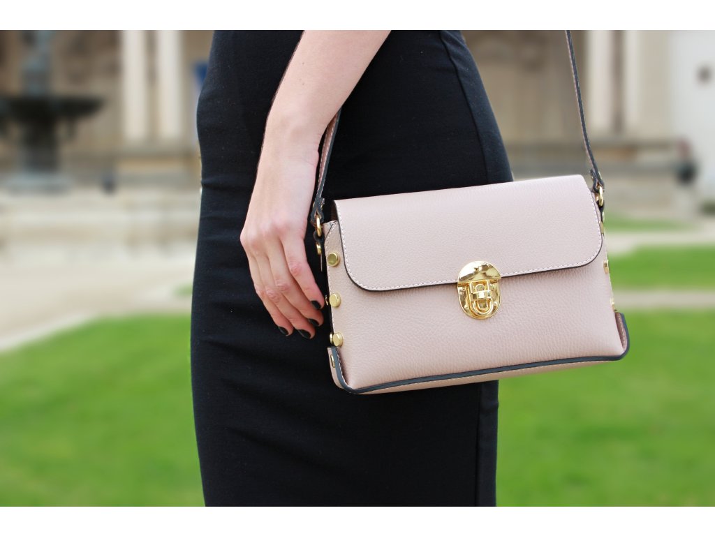 Veľmi pekná kabelka s jednoduchým dizajnom vyrobená z pravej kože. Kabelka sa uzatvára pomocou zlatej spony. Súčasťou kabelky je popruh s max. dĺžkou 120 cm. Je vhodná na každodenné nosenie do mesta, práce i na špeciálne príležitosti. Táto crossbody kabelka rozžiari váš outfit v každom počasí.