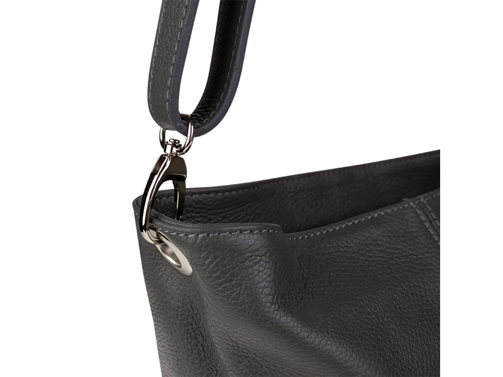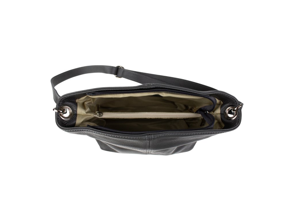 Praktická kabelka uzatvárateľná na zips, nositeľná cez rameno alebo cross-body (krížom). Vo vnútri disponuje priečkou, ktorá zároveň slúži ako úložná priehradka so zipsom a na bočnej stene sa nachádza ďalšie zipsovacie vrecko. Hĺbka jej dna je 13 cm. Kabelka má naviac nastaviteľný popruh s maximálnou dĺžkou cca 120 cm.