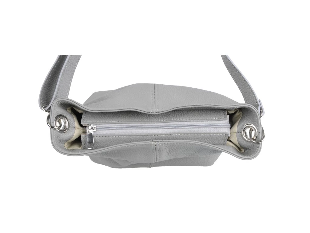 Praktická kabelka uzatvárateľná na zips, nositeľná cez rameno alebo cross-body (krížom). Vo vnútri disponuje priečkou, ktorá zároveň slúži ako úložná priehradka so zipsom a na bočnej stene sa nachádza ďalšie zipsovacie vrecko. Hĺbka jej dna je 13 cm. Kabelka má naviac nastaviteľný popruh s maximálnou dĺžkou cca 120 cm.