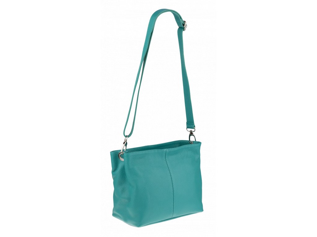Praktická tyrkysová kabelka uzatvárateľná na zips, nositeľná cez rameno alebo cross-body (krížom). Vo vnútri disponuje priečkou, ktorá zároveň slúži ako úložná priehradka so zipsom a na bočnej stene sa nachádza ďalšie zipsovacie vrecko. Hĺbka jej dna je 13 cm. Kabelka má naviac nastaviteľný popruh s maximálnou dĺžkou cca 120 cm.