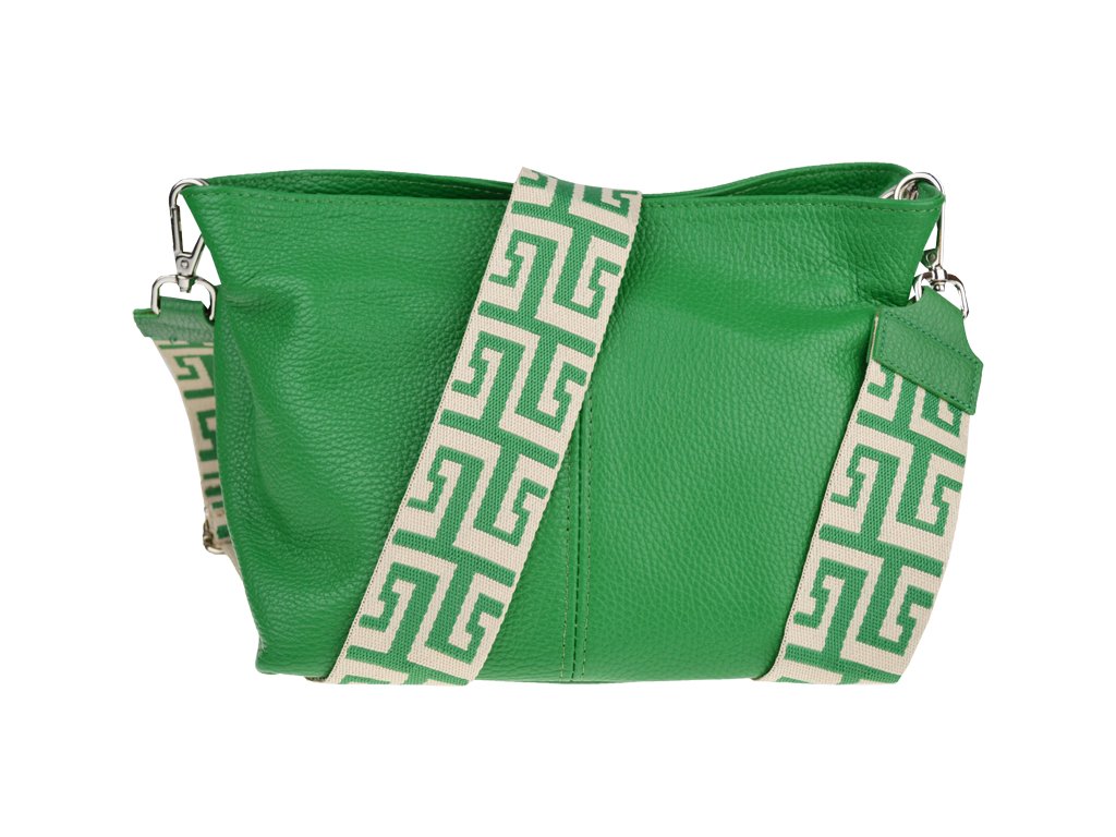Praktická zelená kabelka uzatvárateľná na zips, nositeľná cez rameno alebo cross-body (krížom). Vo vnútri disponuje priečkou, ktorá zároveň slúži ako úložná priehradka so zipsom a na bočnej stene sa nachádza ďalšie zipsovacie vrecko. Hĺbka jej dna je 13 cm. Kabelka má naviac nastaviteľný popruh s maximálnou dĺžkou cca 120 cm.