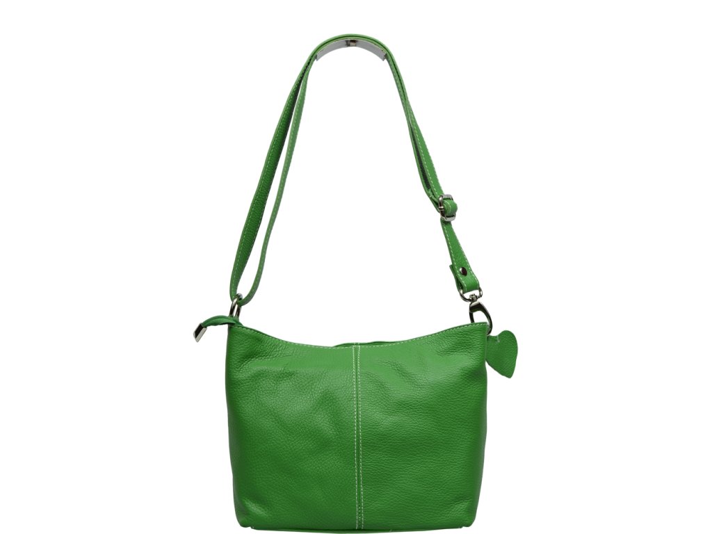 Praktická zelená kabelka uzatvárateľná na zips, nositeľná cez rameno alebo cross-body (krížom). Vo vnútri disponuje priečkou, ktorá zároveň slúži ako úložná priehradka so zipsom a na bočnej stene sa nachádza ďalšie zipsovacie vrecko. Hĺbka jej dna je 13 cm. Kabelka má naviac nastaviteľný popruh s maximálnou dĺžkou cca 120 cm.