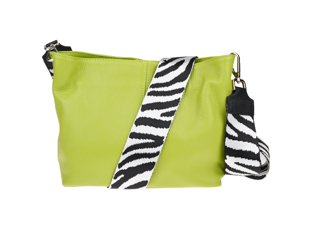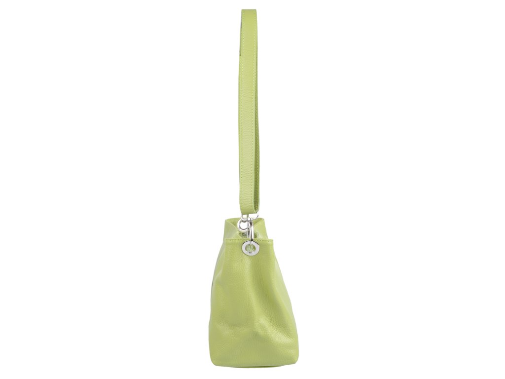 Praktická zelená kabelka uzatvárateľná na zips, nositeľná cez rameno alebo cross-body (krížom). Vo vnútri disponuje priečkou, ktorá zároveň slúži ako úložná priehradka so zipsom a na bočnej stene sa nachádza ďalšie zipsovacie vrecko. Hĺbka jej dna je 13 cm.