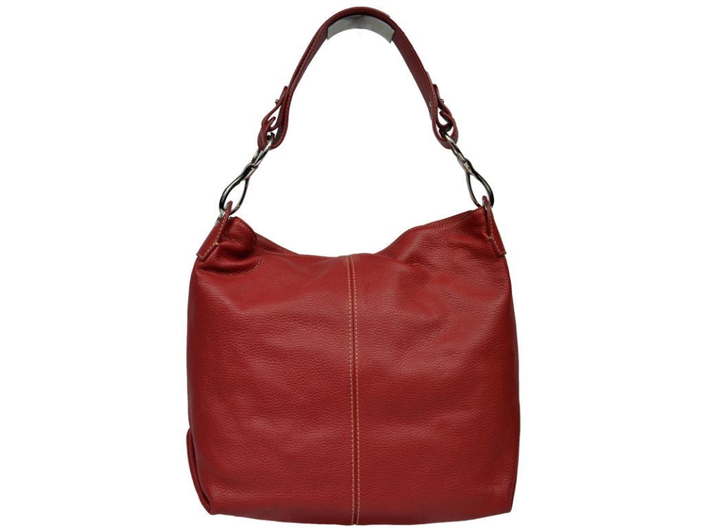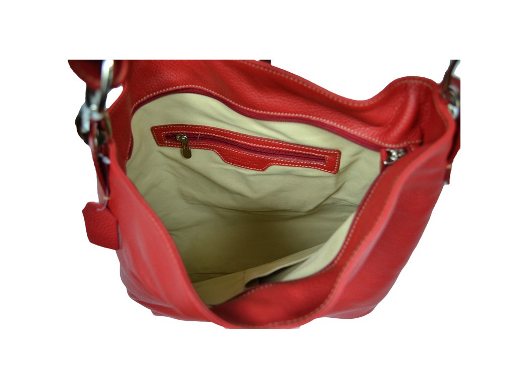 Praktická červená kabelka s moderným designom vyrobená z odolnej poctivej kože. Táto kožená kabelka je nositeľná cez rameno a uzatvárateľná na zips. Pohodlne sa do nej vojdú dokumenty formátu A4. Vnútro kabelky disponuje vreckom na zips a dvoma malými priehradkami.