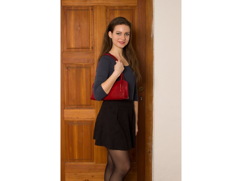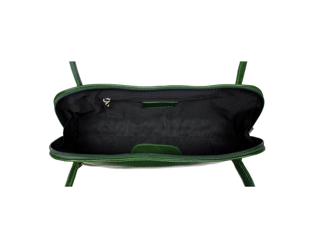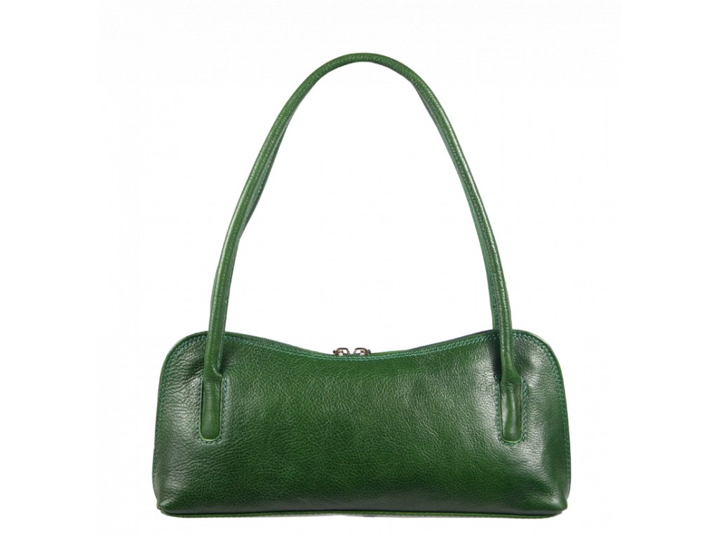 Malá, no veľmi obľúbená praktická zelená kabelka vyrobená z pravej pevnej kože, ktorá si veľmi dobre drží svoj tvar. Je vhodná na nosenie cez rameno. Vo vnútri disponuje malým vreckom na zips. Kabelka je vhodná nielen na každodenné nosenie do práce či do mesta, ale i na významnejšie či slávnostné priležitosti.