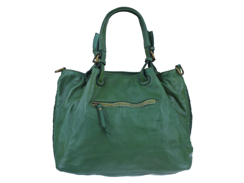 Kožená a priestranná kabelka v zelenej farbe. Jednoduchý dizajn a množstvo priestoru z nej vytvára praktickú tašku, ktorá je vhodná na každodenné nosenie, do práce alebo školy. Vnútro kabelky disponuje vreckom na zips. Súčasťou balenia je nastaviteľný popruh s maximálnou dĺžkou cca 107 cm.