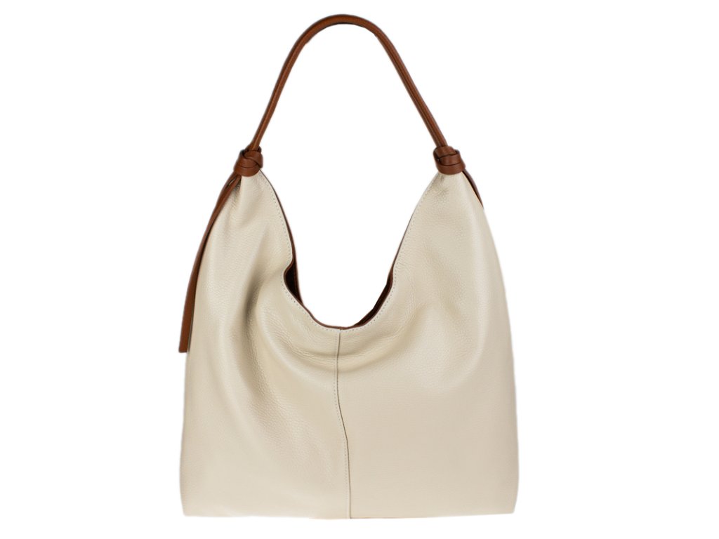 Táto štýlová kabelka typu „shopping bag“ vás na prvý pohľad zaujme svojou krásnu bežovou farbou a moderným, uvoľneným strihom (tzv. hobo style). Je vyrobená z materiálu s jemnou zrnitou textúrou, ktorá jej dodáva luxusný vzhľad a je príjemná na dotyk.