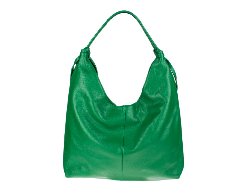 Táto štýlová kabelka typu „shopping bag“ vás na prvý pohľad zaujme svojou krásnu zelenou farbou a moderným, uvoľneným strihom (tzv. hobo style). Je vyrobená z materiálu s jemnou zrnitou textúrou, ktorá jej dodáva luxusný vzhľad a je príjemná na dotyk.