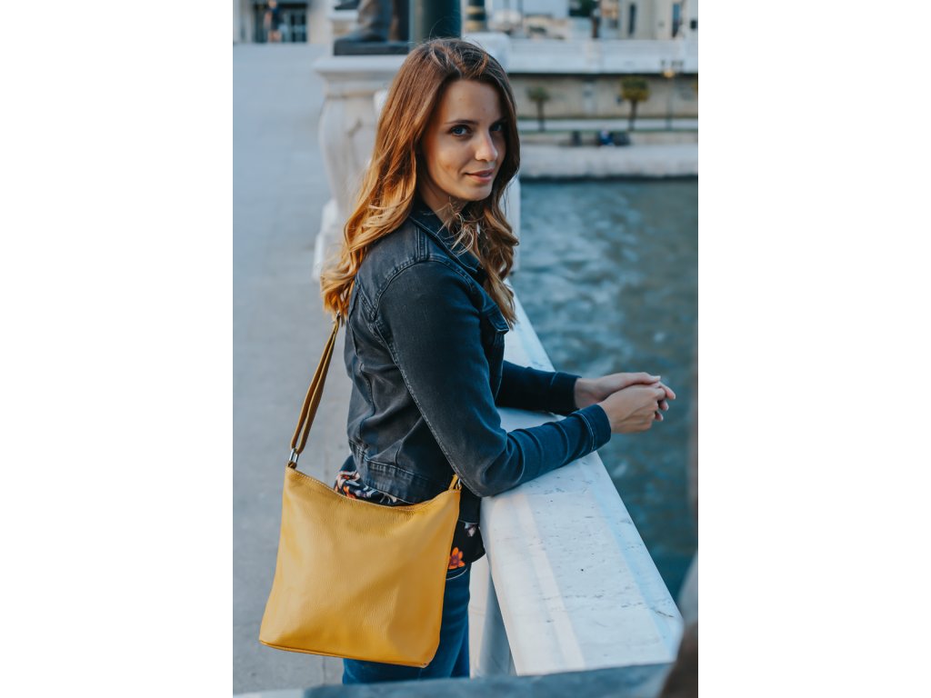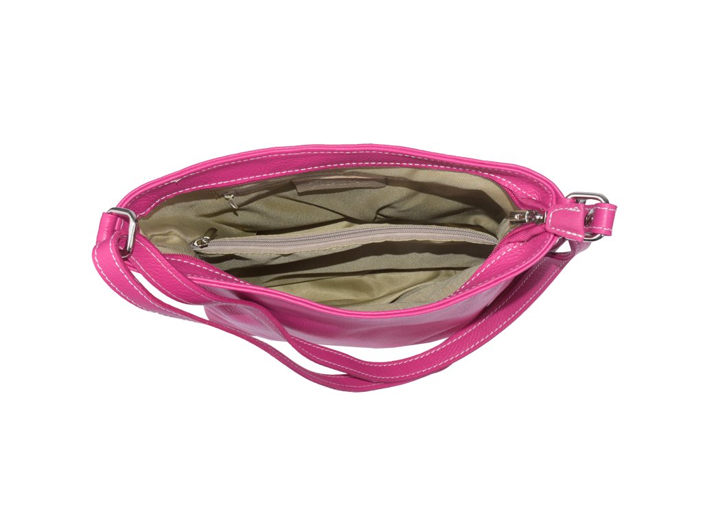 Jednoduchá a praktická kabelka vhodná na každodenné nosenie. Je vyrobená z pravej poctivej kože a uzatvára sa pomocou zipsu. Vo vnútri nájdete priečku uprostred, ktorá súčasne slúži ako vrecko na zips, a malé vrecko a priehradku na bočných stenách. Hĺbka dna tejto kabelky je 11 cm.