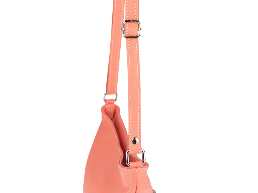 Jednoduchá a praktická kabelka vhodná na každodenné nosenie. Je vyrobená z pravej poctivej kože a uzatvára sa pomocou zipsu. Vo vnútri nájdete priečku uprostred, ktorá súčasne slúži ako vrecko na zips, a malé vrecko a priehradku na bočných stenách. Hĺbka dna tejto kabelky je 11 cm.