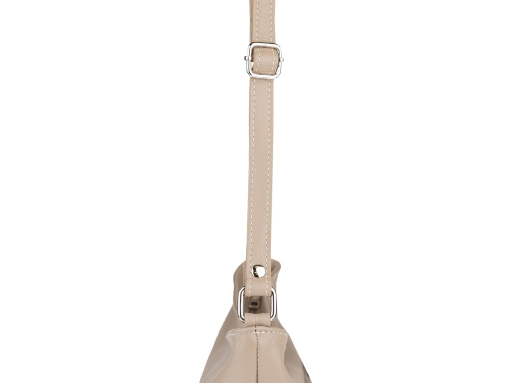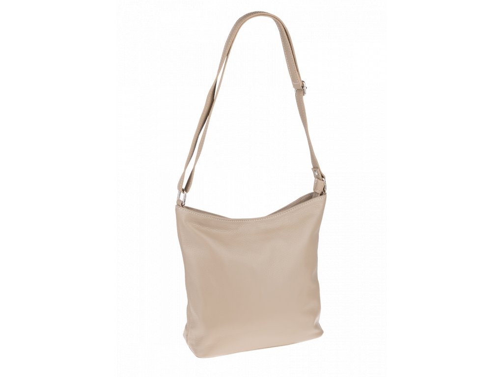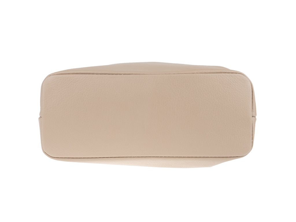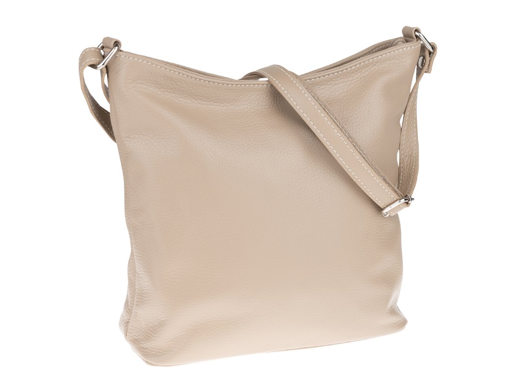 Jednoduchá a praktická kabelka vhodná na každodenné nosenie v univerzálnej hnedo-béžovej farbe. Je vyrobená z pravej poctivej kože a uzatvára sa pomocou zipsu. Vo vnútri nájdete priečku uprostred, ktorá súčasne slúži ako vrecko na zips, a malé vrecko a priehradku na bočných stenách. Hĺbka dna tejto kabelky je 11 cm.