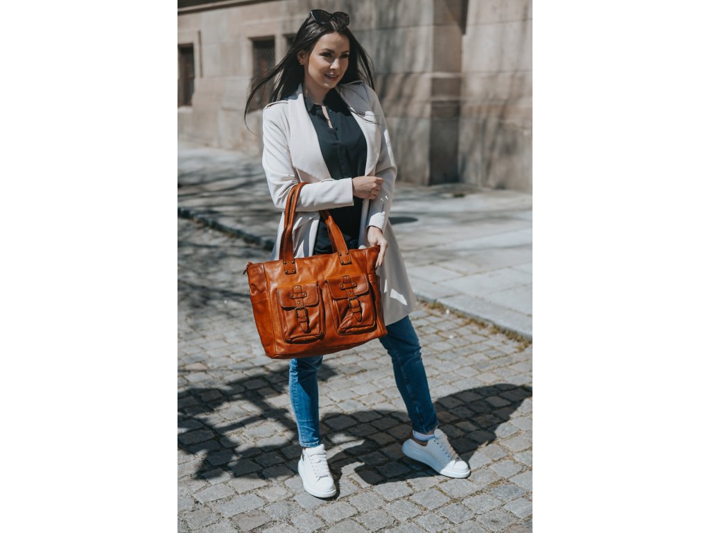 Veľká, praktická a kvalitná kožená kabelka. Kabelka sa uzatvára na zips. Dĺžka prídavného popruhu je 117 cm.