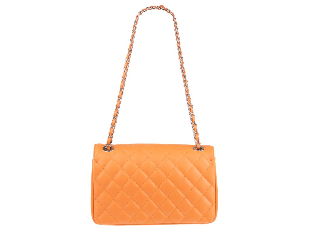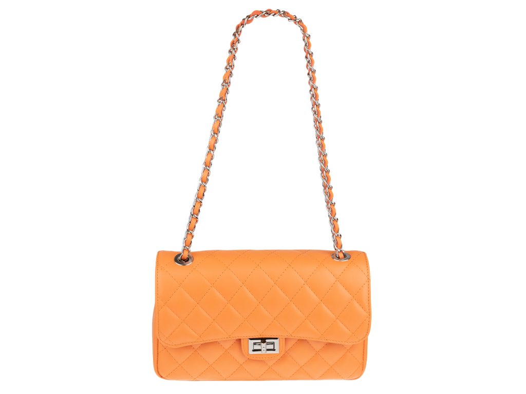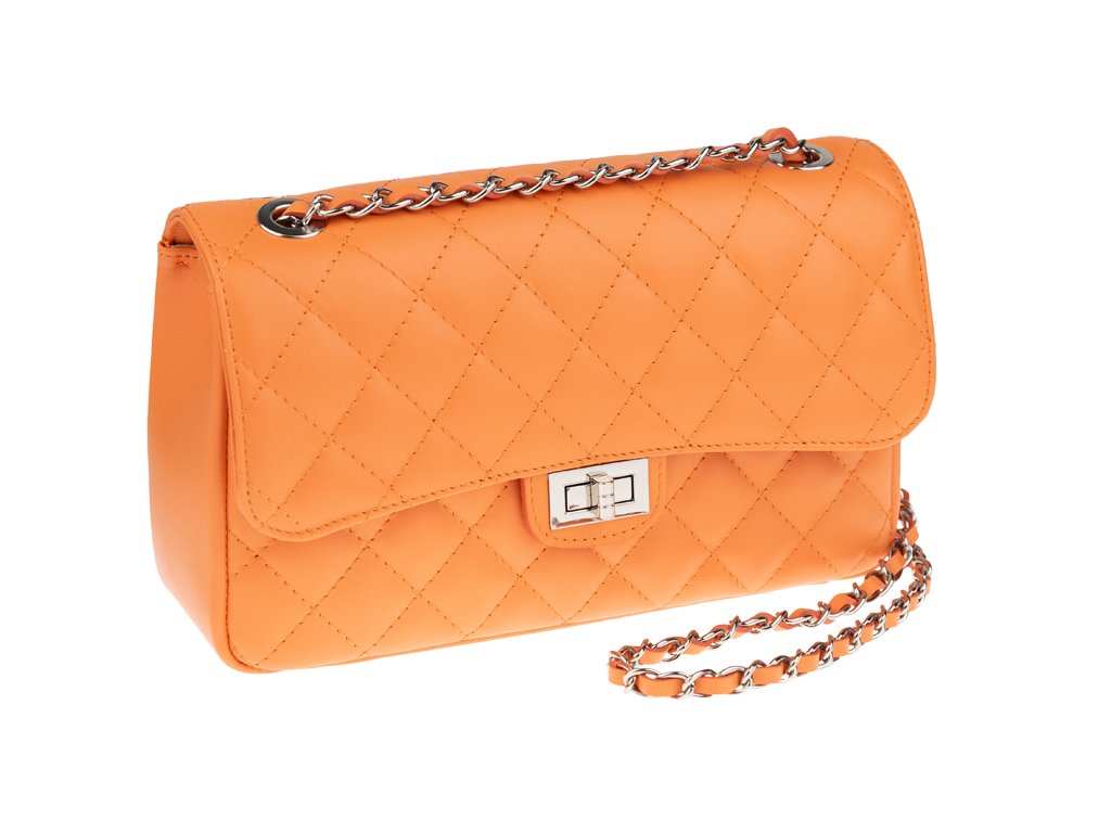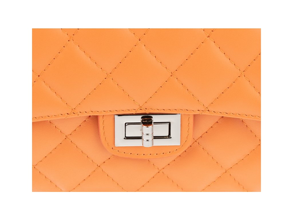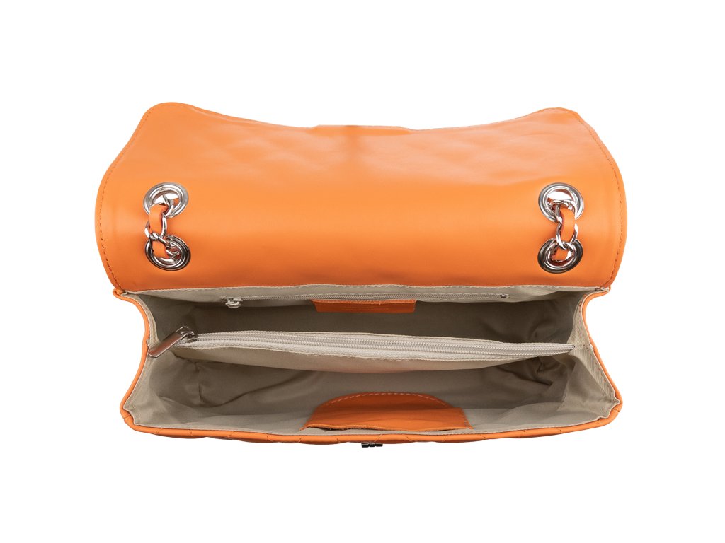 Kožená, elegantná kabelka v oranžovej farbe v modernom designe. Vo vnútri disponuje úložnou priehradkou na zips a zipsovacím vreckom.
