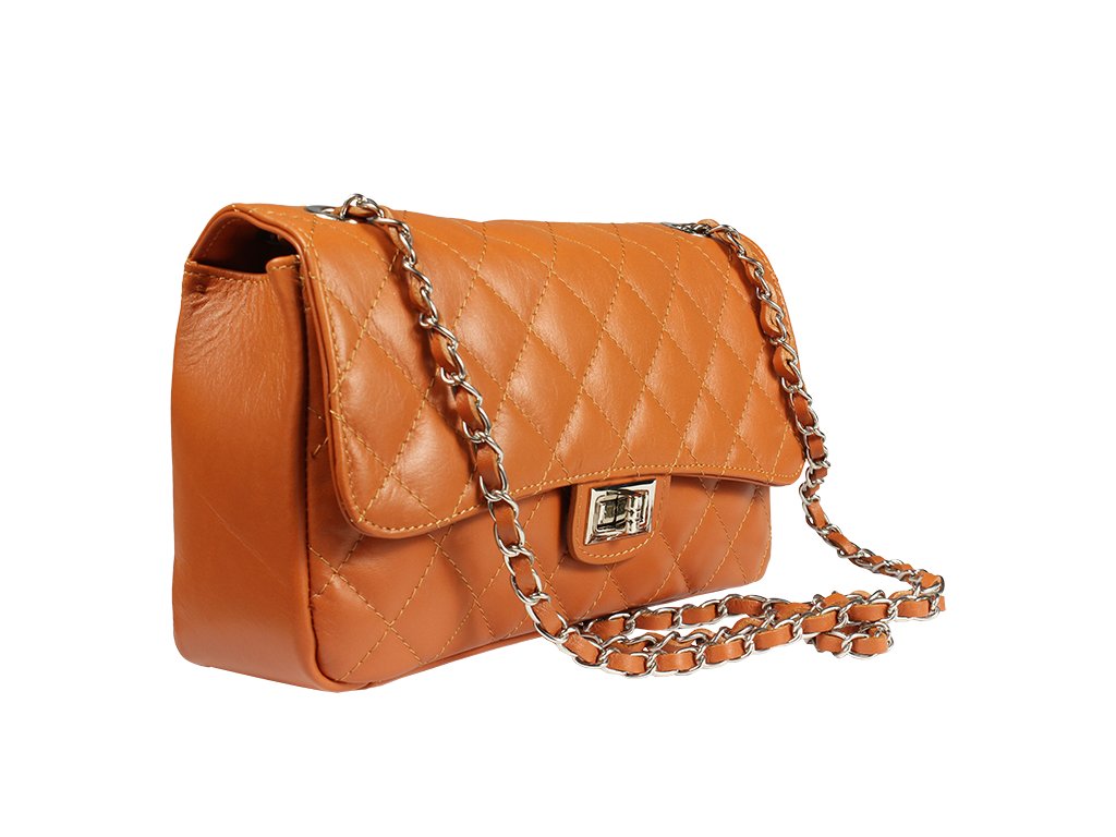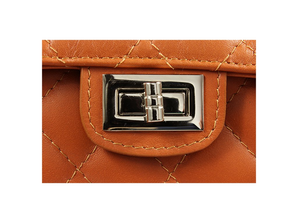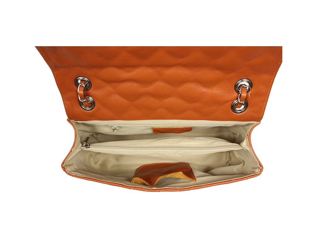 Kožená, elegantná kabelka v camel farbe v modernom designe. Vo vnútri disponuje úložnou priehradkou na zips a zipsovacím vreckom.