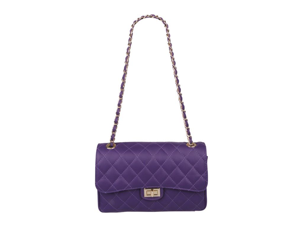 Kožená, elegantná kabelka vo fialovej farbe v modernom designe. Vo vnútri disponuje úložnou priehradkou na zips a zipsovacím vreckom.