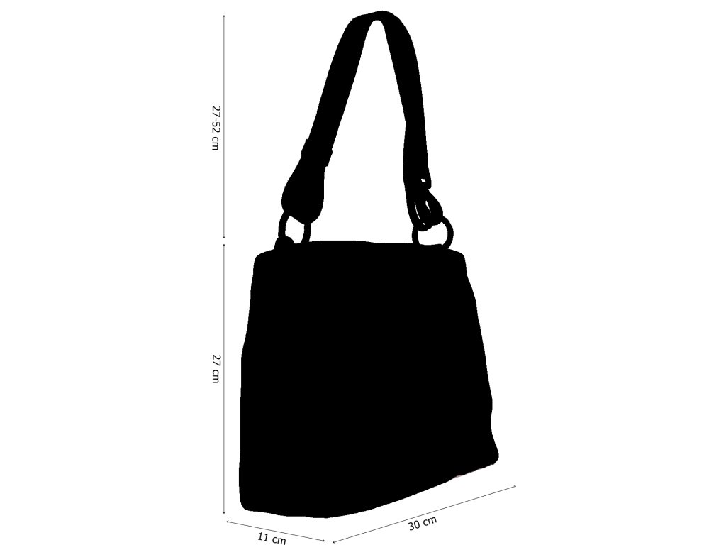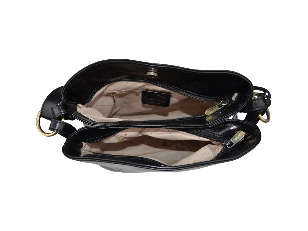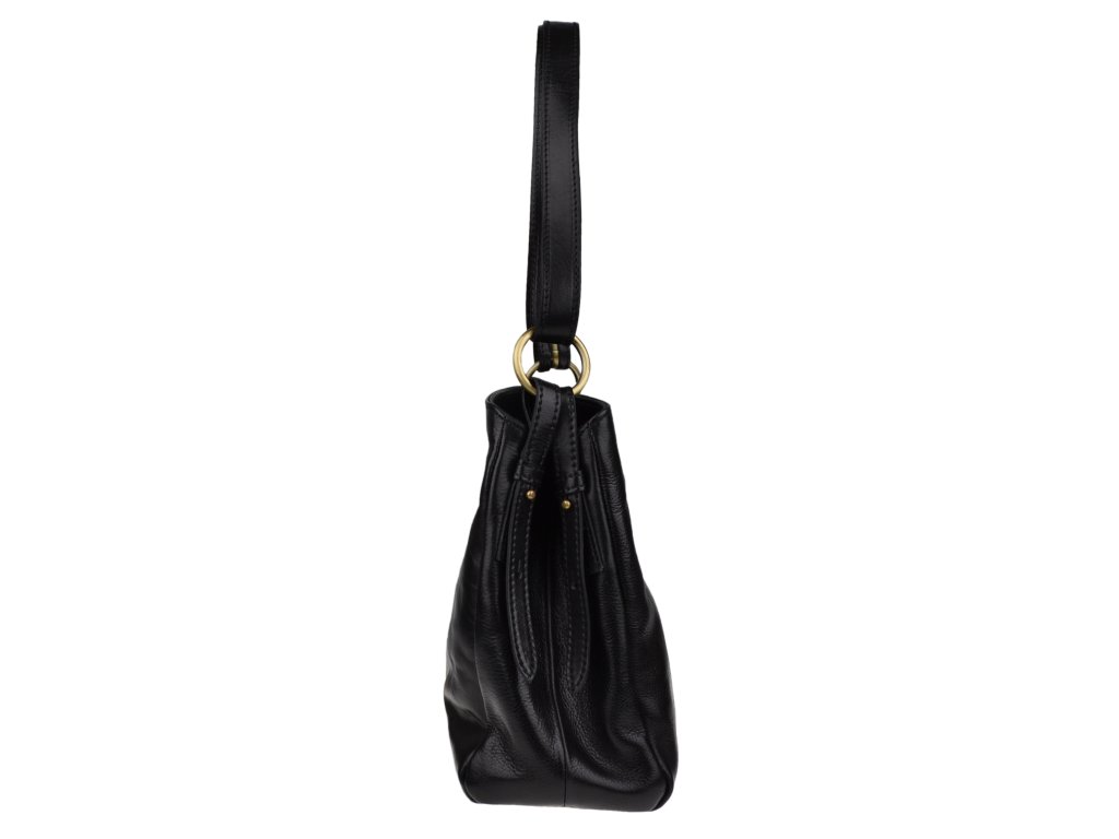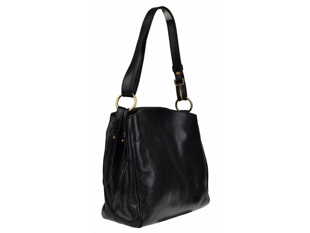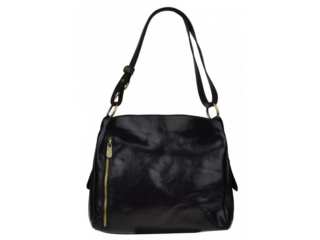 Praktická, ale zároveň elegantná kabelka s jednoduchým dizajnom v čiernej farbe. Nositeľná cez rameno. Je vyrobená z leštenej hladkej kože. Popruh na rameno je nastaviteľný na dve dĺžky.