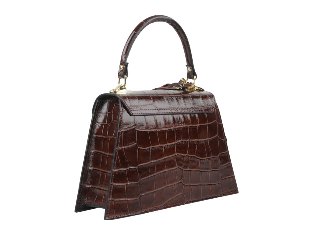 Malá šikovná kabelka so zaujímavým tvarom. Je vyrobená z pravej poctivej kože s hladkou úpravou a dobre si drží svoj tvar. Je vhodná na nosenie cez rameno alebo ako crossbody.