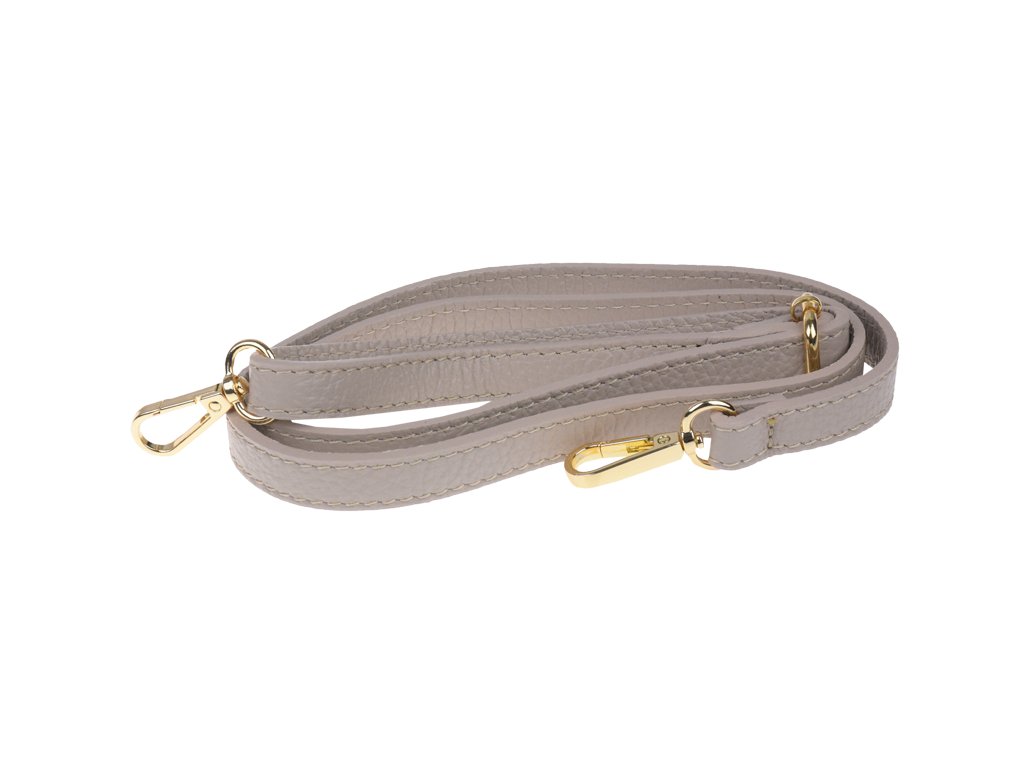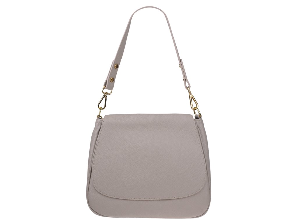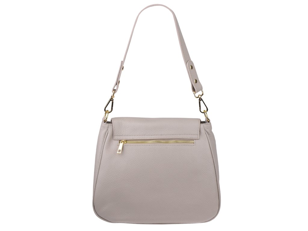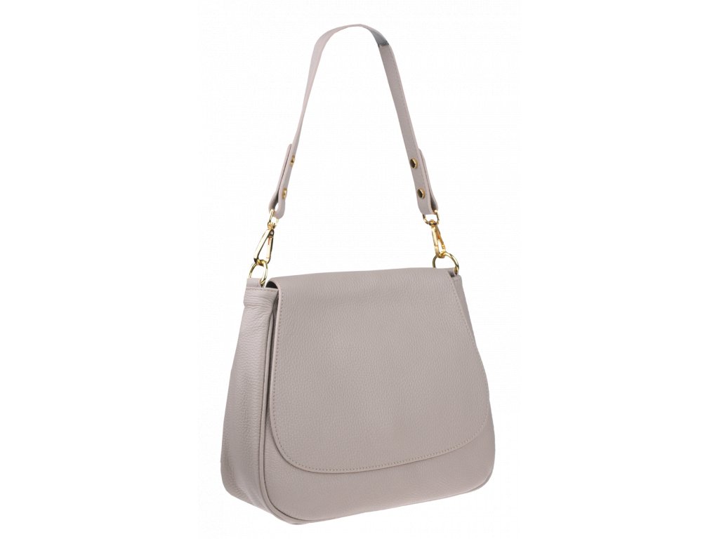 Kožená, elegantná kabelka ve béžovej farbe v modernom designe. Dĺžka prídavného popruhu je 117 cm.