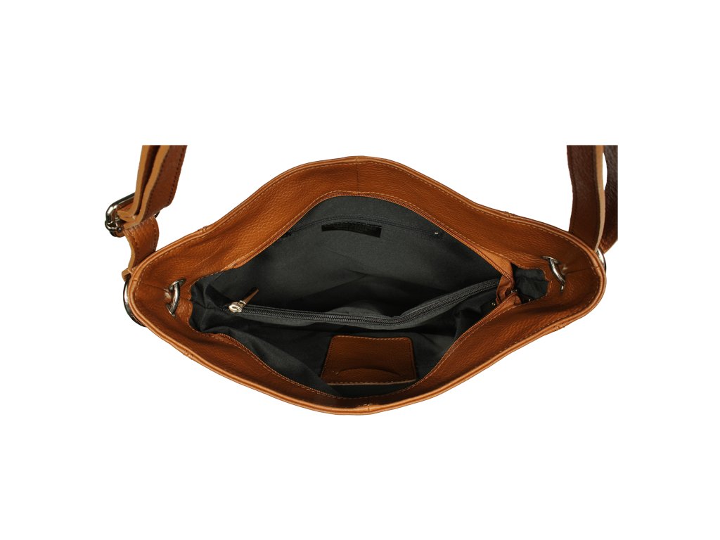 Praktická kabelka z kvalitnej kože. Kabelku je možné nosiť cez rameno alebo cross-body (krížom). Kabelka je uzatvárateľná na zips, vnútro kabelky je rozdelený na tri časti, jedno vrecko je uzatvárateľné na zips, Ďalej je možné využiť praktické priehradky pre mobil a malé uzatvárateľné vrecká na drobné predmety. Dĺžka popruhu je max. 120 cm.